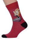 Круглогодичные средней длины мужские носки, цвет многоцветные (мультиколор)-бордовый, повседневные, шов обычный (не бесшовные), принт (рисунок): крупные контрастные рисунки, с узором, люди, состав: 82% хлопок, 15% полиамид, 3% эластан, арт. Nm-393. Производитель «ИП Рыбалкин В.С., Московская область, г. Щелково» под брендом «Msclub».