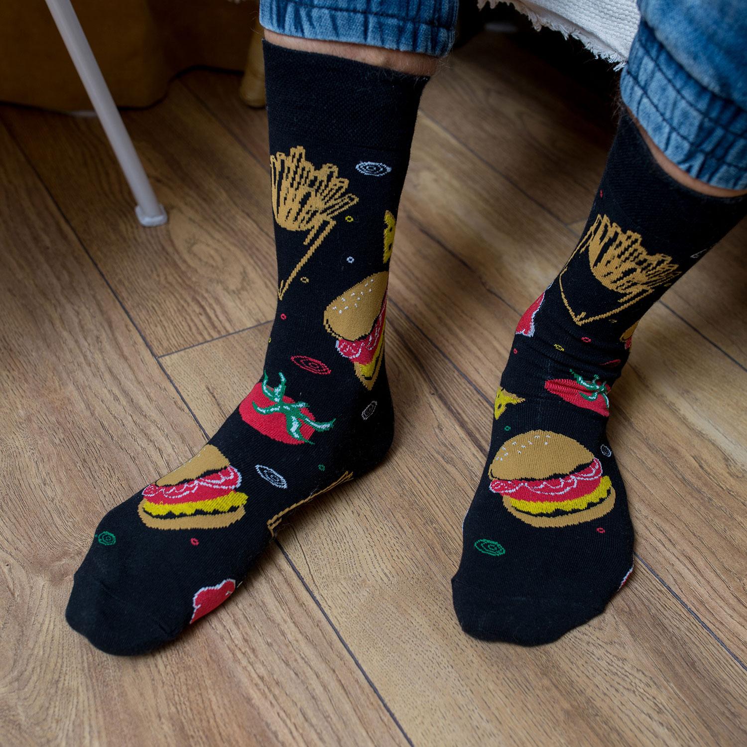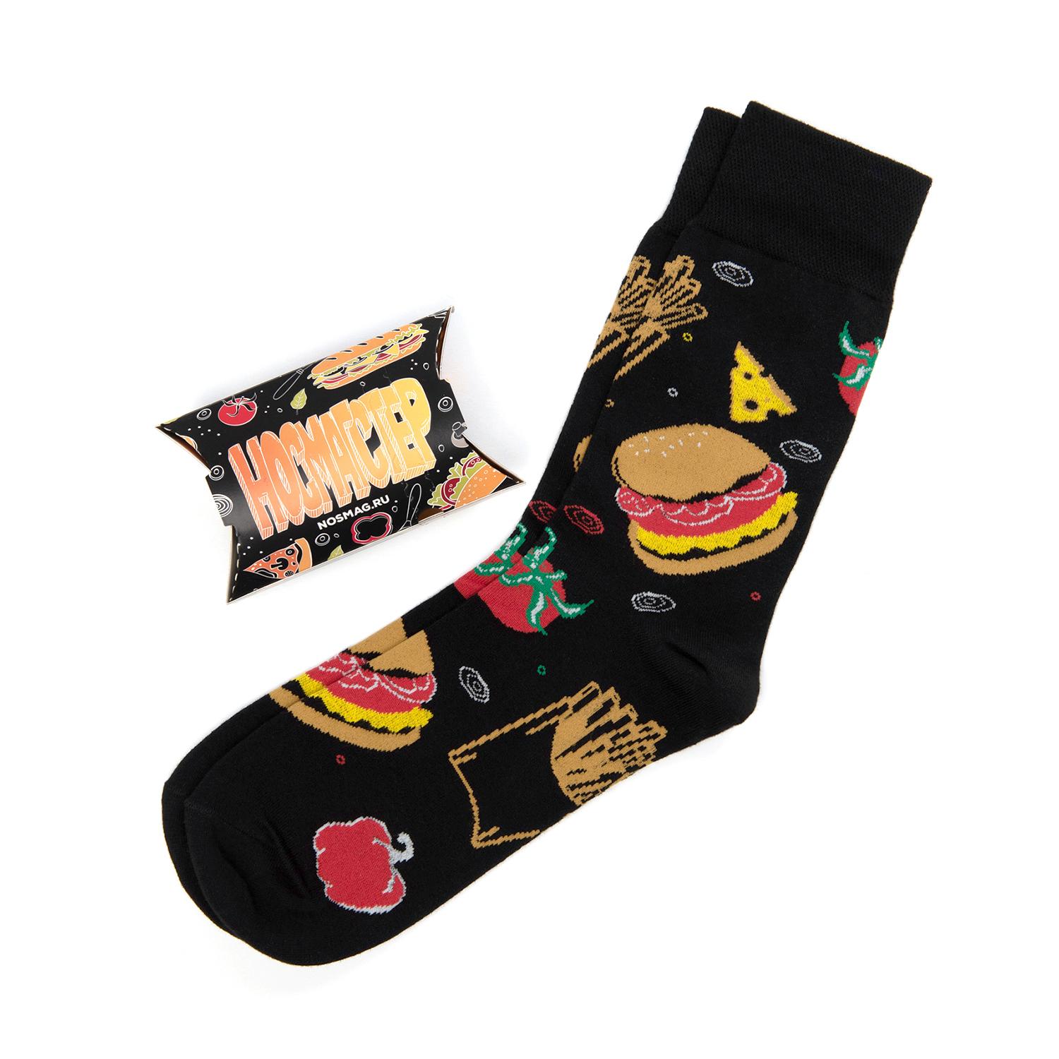 Мы готовы раскрыть завесу тайны. Внутри — пара хлопковых носков от крупной российской фабрики VIRTUOSO. Они украшены принтом в виде знаменитых блюд сетей быстрого питания и выглядят также аппетитно и притягательно, как и упаковка.
