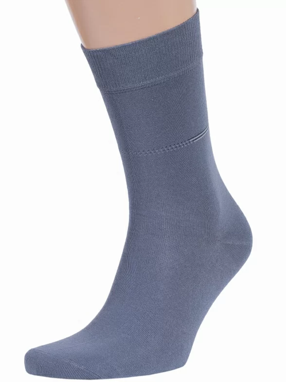 Круглогодичные средней длины мужские носки, цвет серый, классические, шов кеттельный (бесшовная технология), принт (рисунок): однотонный, небольшой рисунок, состав: 85% хлопок, 13% полиамид, 2% эластан, арт. М-216. Производитель «ООО Орудьевский трикотаж, Россия» под брендом «Rusocks (орудьевский трикотаж)».