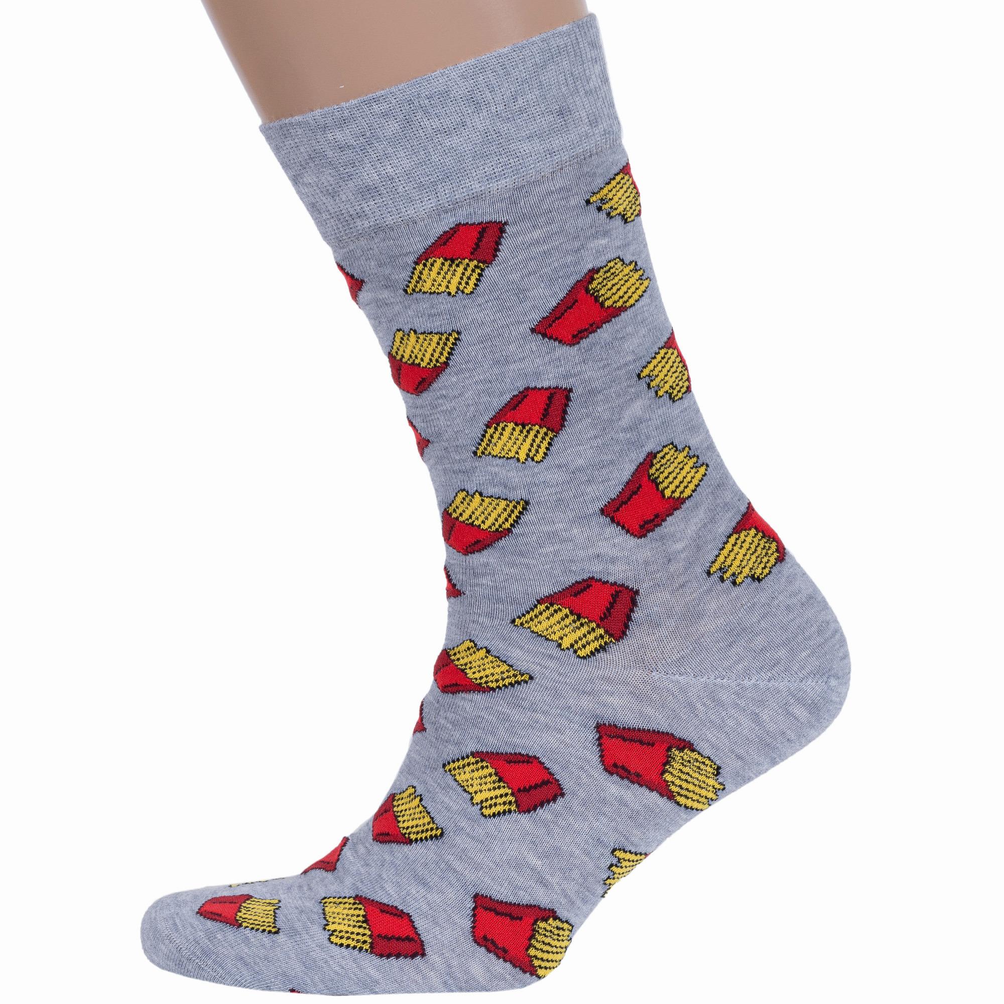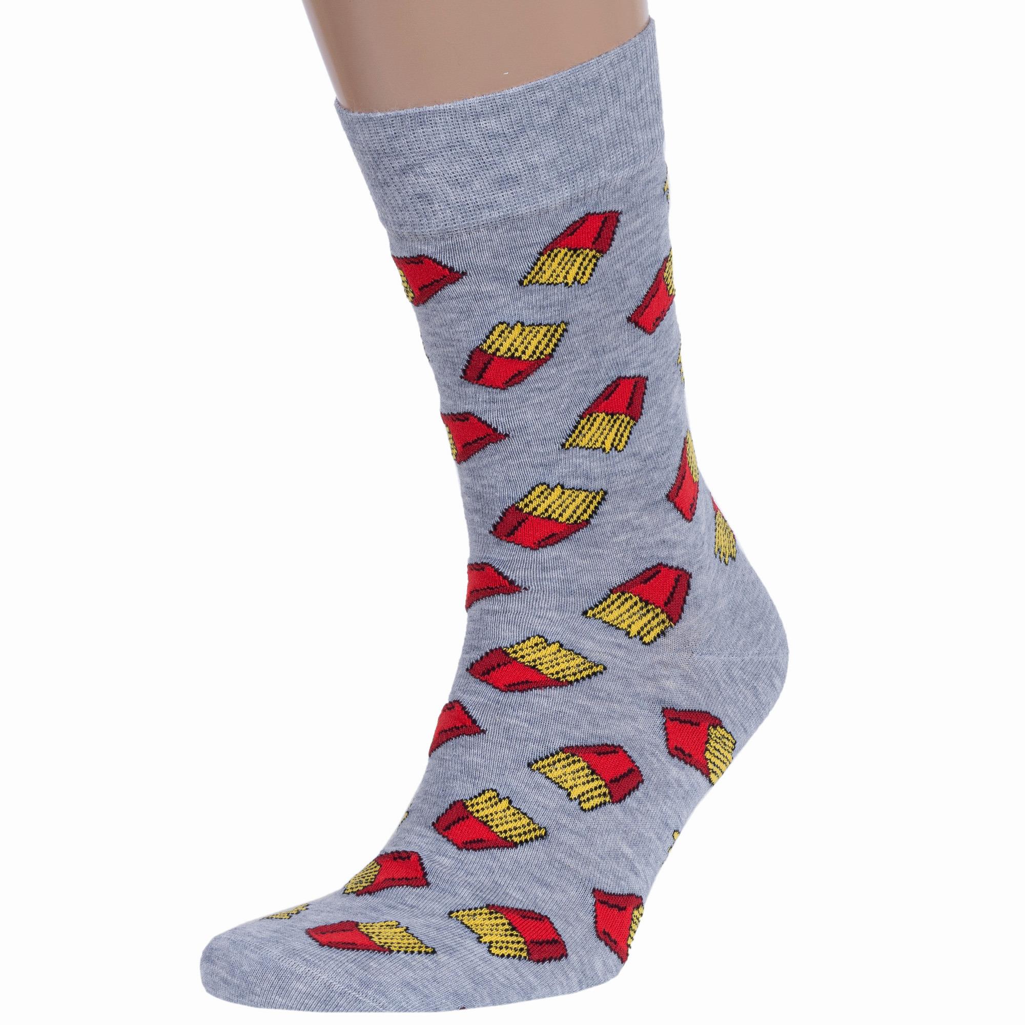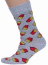 Круглогодичные средней длины мужские носки, цвет серый, повседневные, шов кеттельный (бесшовная технология), принт (рисунок): еда и напитки, с узором, состав: 78% хлопок, 20% полиамид, 2% эластан, арт. М3-13014. Производитель «ООО Орудьевский трикотаж, Россия» под брендом «Rusocks (орудьевский трикотаж)».