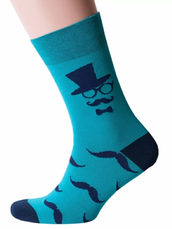 Круглогодичные средней длины мужские носки, цвет бирюзовый, повседневные, шов обычный (не бесшовные), принт (рисунок): люди, с узором, состав: 82% хлопок, 15% полиамид, 3% эластан, арт. Nm-43. Производитель «ИП Рыбалкин В.С., Московская область, г. Щелково» под брендом «Msclub».