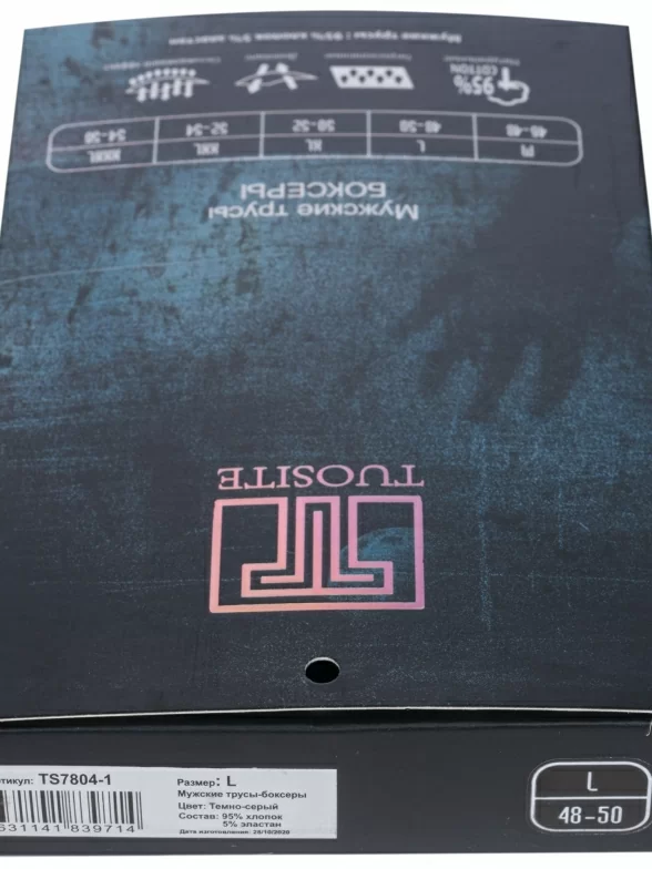 Трусы темно-серого цвета артикула TS7804-1 поставляются в фирменной коробке с дополнительной упаковкой в плотный транспортный картон.