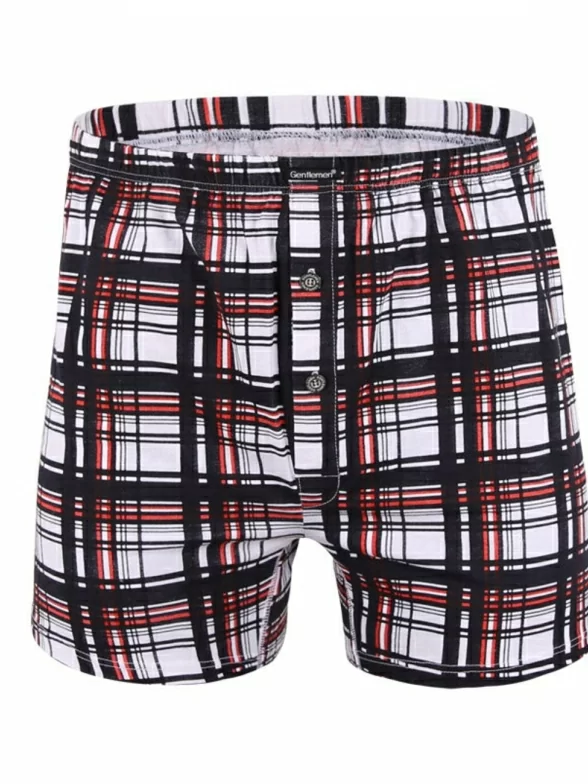 Мужские боксеры с гульфиком на пуговицах. Они отличаются удобным эластичным поясом и оформлены принтом в клетку.