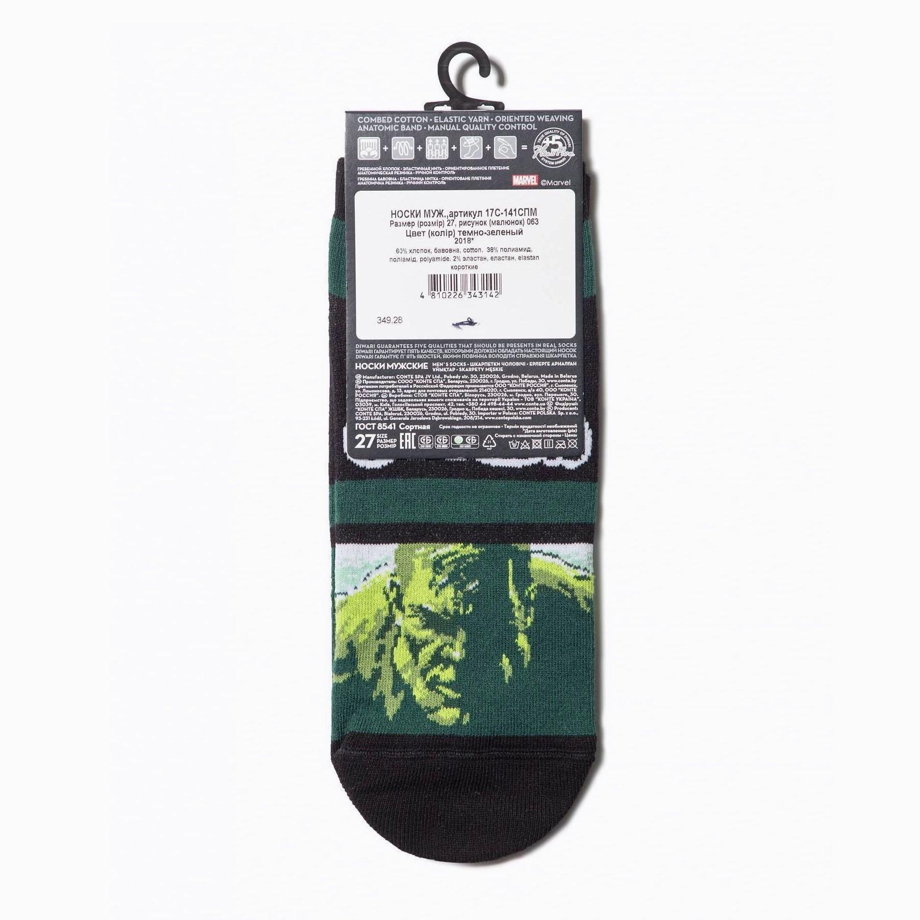 Мужские короткие носки Marvel DiWaRi, 17С-141СПМ, рис. 063, ТЕМНО-ЗЕЛЕНЫЕ
