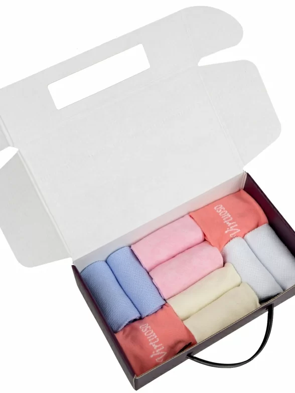 Набор женских носков Virtuoso упакован в подарочную коробку. Носки сделаны на современном оборудовании из хлопковой пряжи.