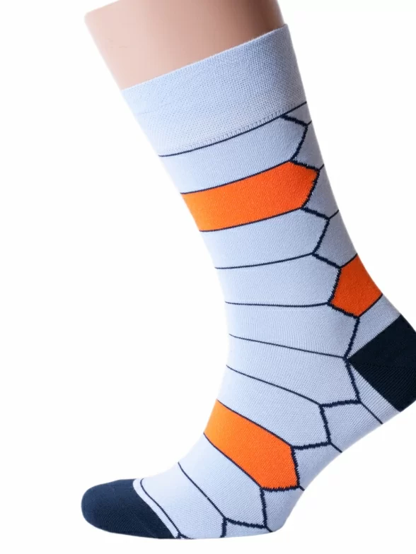 Носки связаны на российской фабрике МС Клаб из качественной хлопковой пряжи на современном оборудовании (200 игл на барабане). На 82% состоят из хлопка, а входящие в состав полиамид и эластан делают изделия более плотными, износостойкими и эластичными.