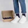 Носки без фабричных этикеток компактно свернуты рулончиками в стильной крафтовой коробке, которая в целях бережного отношения к природе отправляется без дополнительной транспортной упаковки.