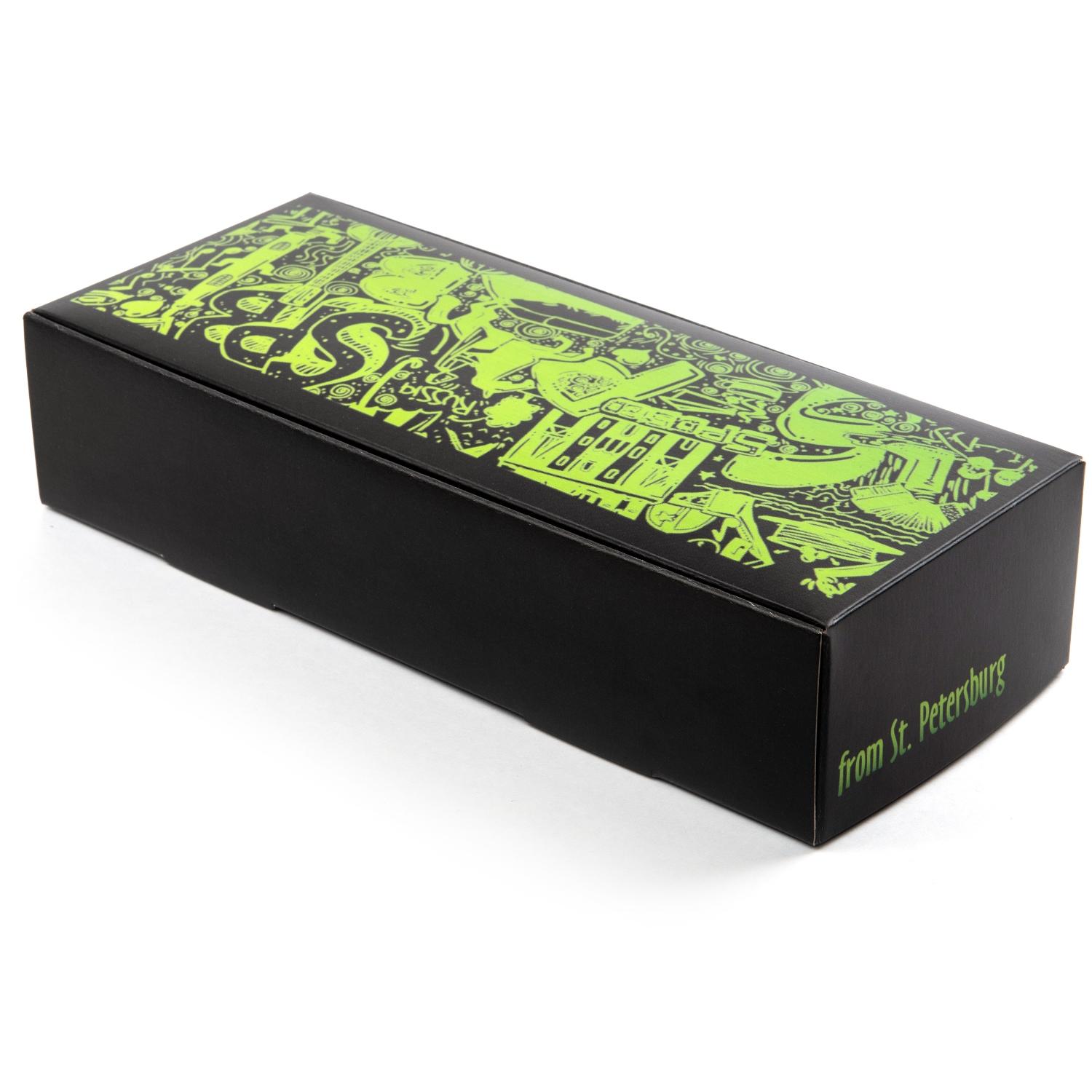Носки без фабричных этикеток компактно свернуты внутри фирменной коробки, которая дополнительно упакована в транспортный картон.