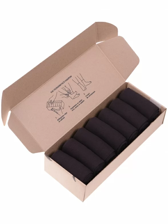 Носки компактно свернуты рулончиками без фабричных этикеток внутри стильной фирменной коробки. Дополнительно упакована в плотный картон, предотвращающий возможные потертости и деформацию во время доставки.