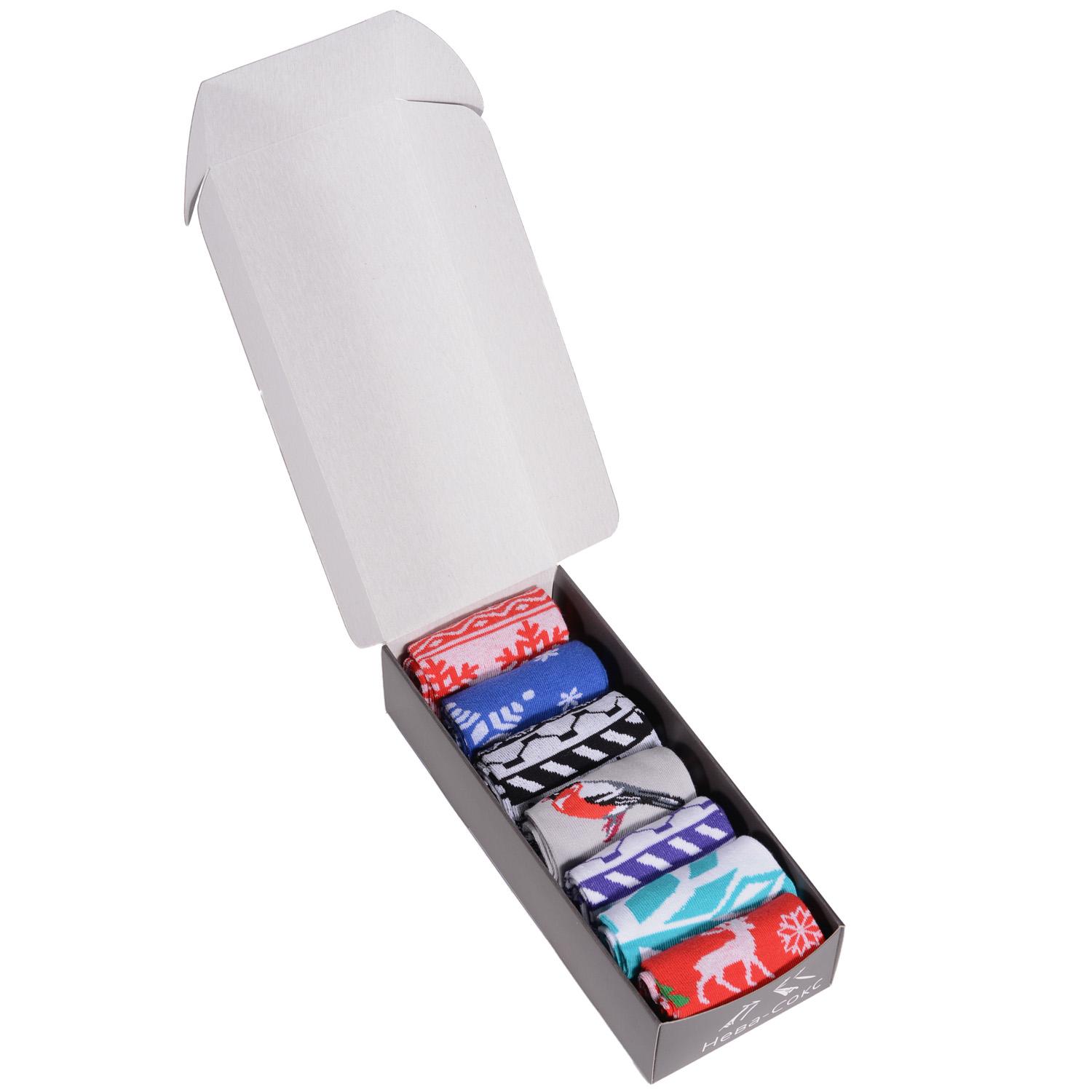 Набор из 7 пар женских хлопковых носков Flappers Peppers - настоящее новогоднее чудо! Носки произведены на российской фабрике в Ленинградской области. Они мягкие, комфортабельные и приятные на ощупь, потому что на 80% состоят из хлопка. Входящие в состав полиамид и эластан делают носки более плотными, износостойкими и эластичными. Изделия плотно прилегают к ноге, не сползают. Идеально разбавят повседневный образ и подарят праздничное настроение. Компактно упакованы в красивую подарочную коробочку.