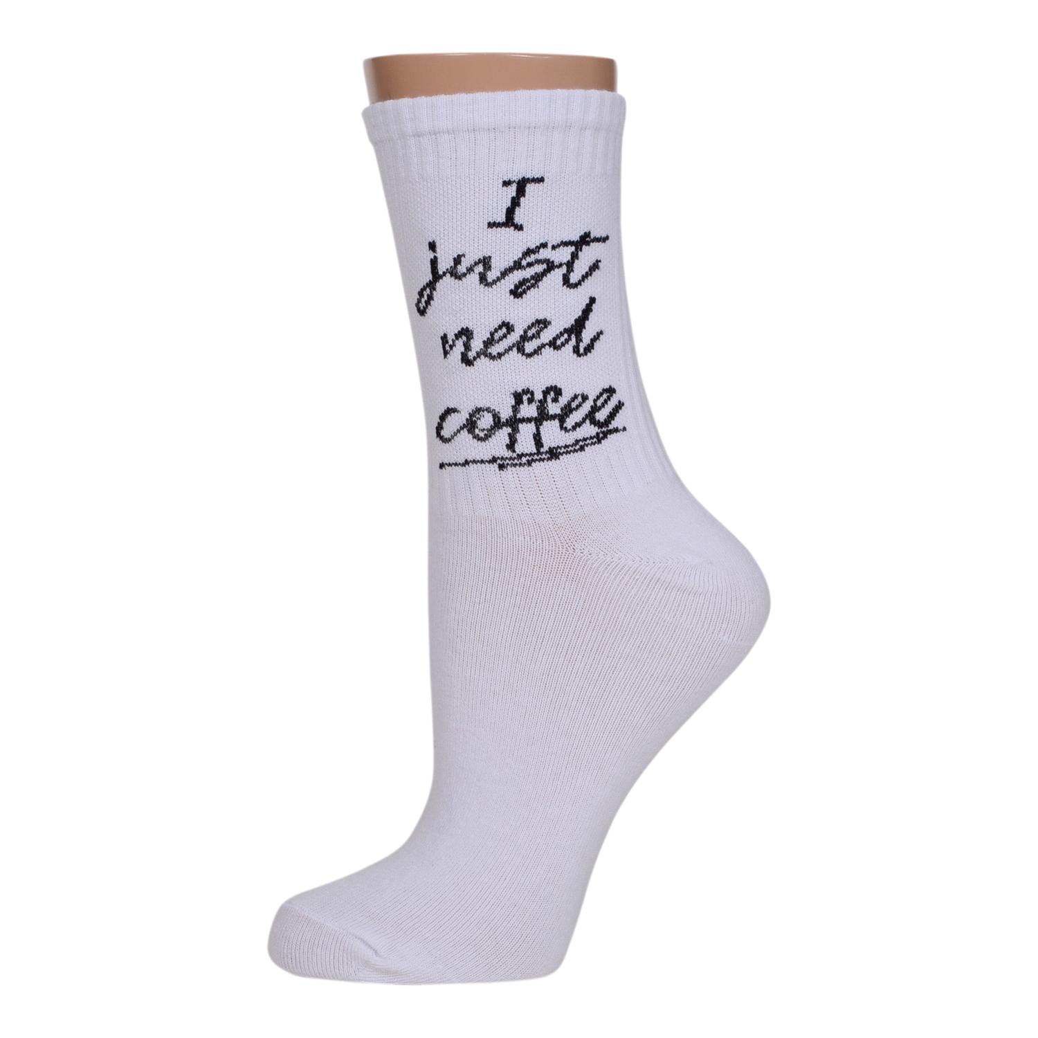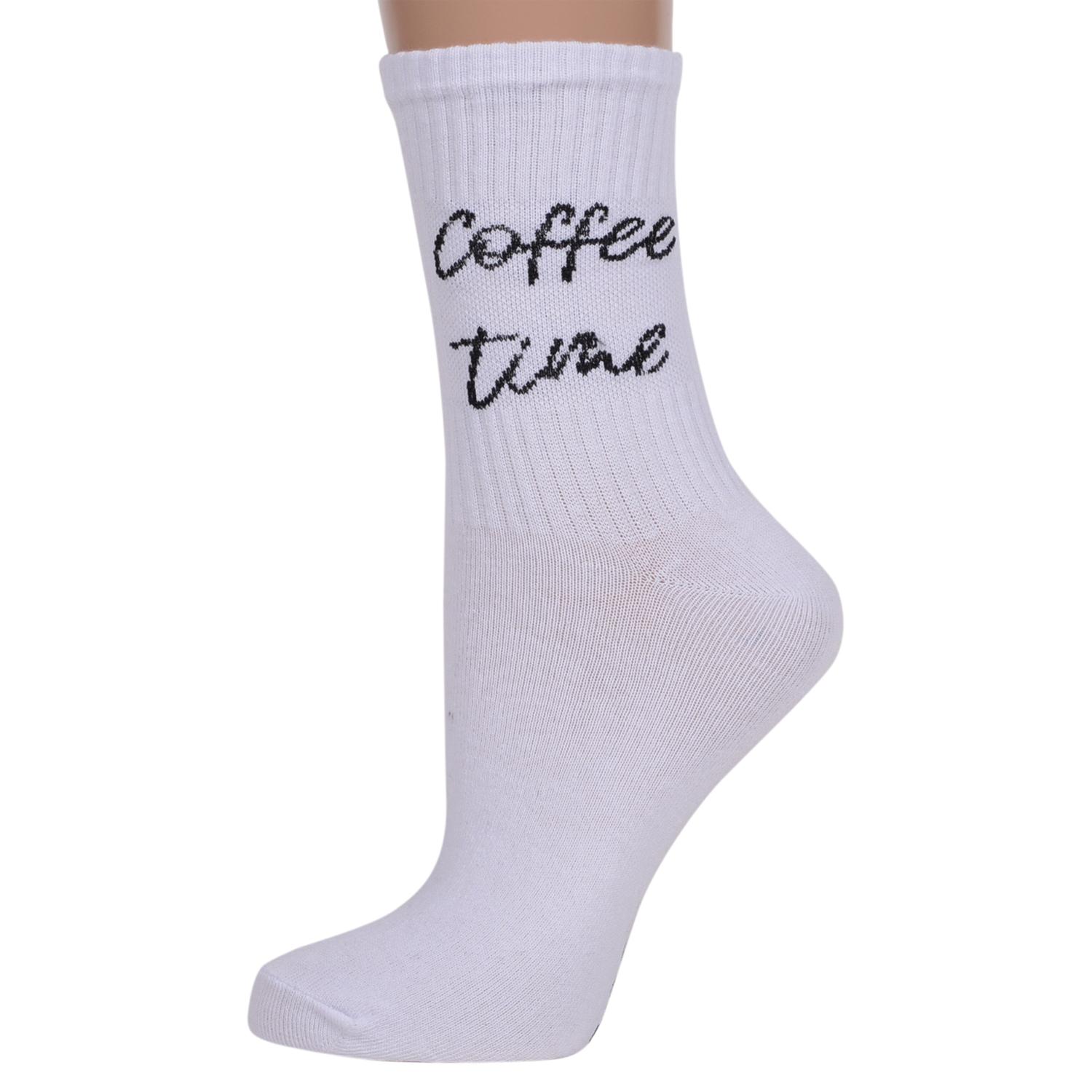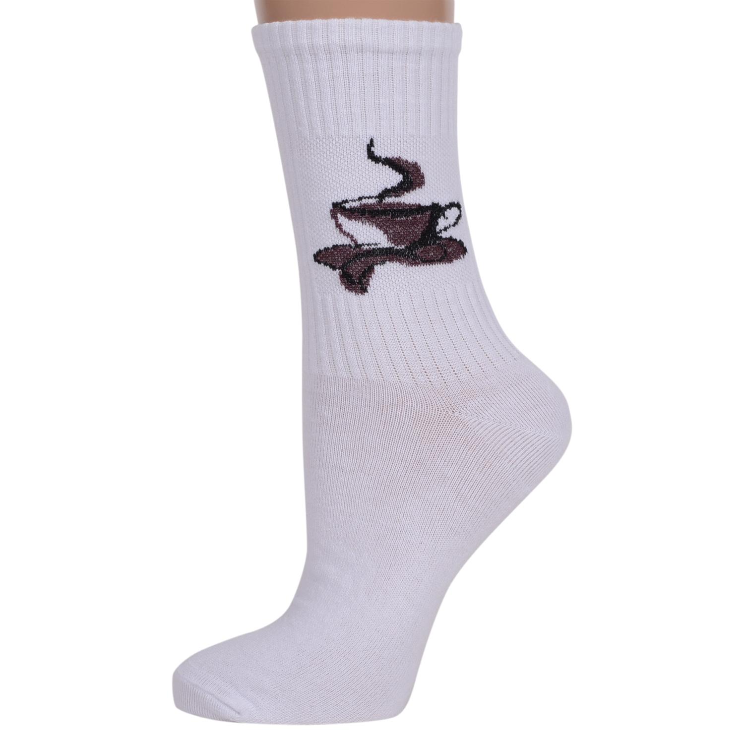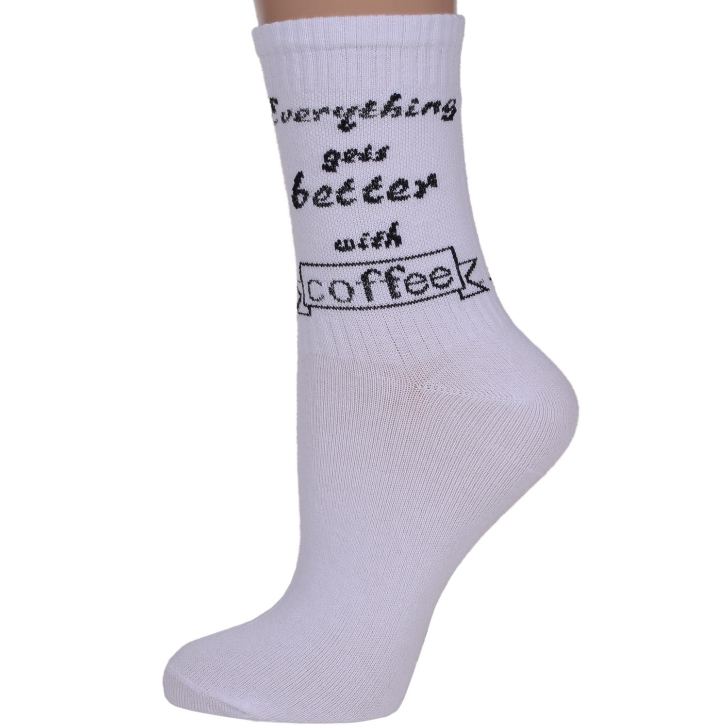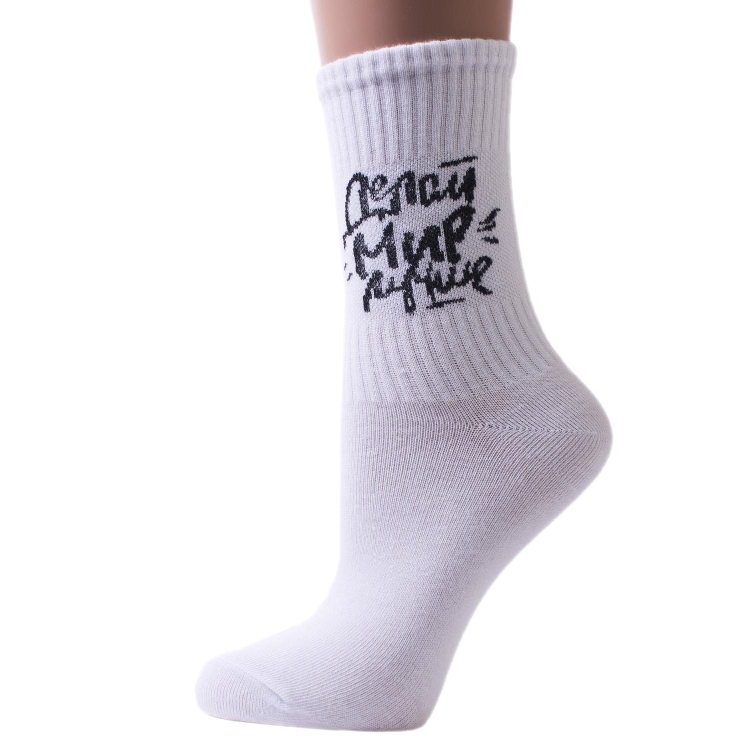 Набор из 7 пар женских белых носков, оформленных яркими рисунками и надписями.