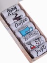 Без фабричных этикеток носки компактно уложены внутри фирменной коробки, которая дополнительно упакована в плотный картон для бережной транспортировки.