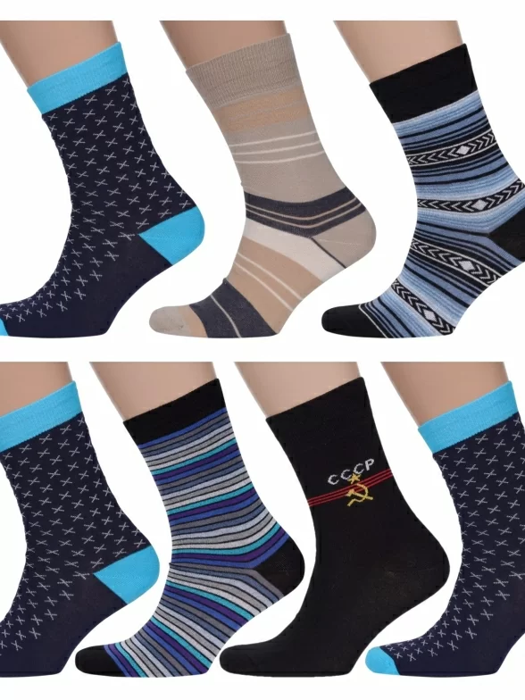Набор из 7 пар фантазийных носки из плотного трикотажа. Полиамид и эластан в составе добавляет хлопку повышенную износостойкость и эластичность. Связаны из хлопка на фабрике ХОХ в Подмосковье.