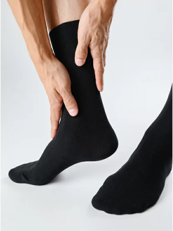 Связаны из хлопка на современном оборудовании (200 игл на квадратный дюйм) на фабрике "Орудьевский трикотаж" в Московской области. Добавление к хлопковой нити полиамида и эластана делает носки более износостойкими, обеспечивая комфортную посадку. Точный состав: 88% хлопок, 10% полиамид, 2% эластан.