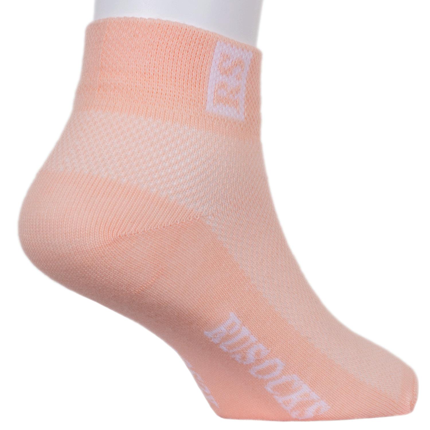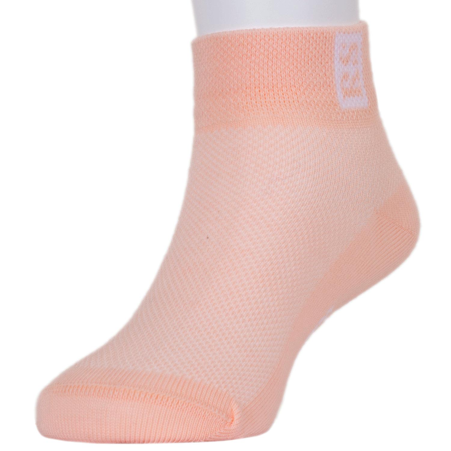 Детские спортивные носки сделаны из мягкого гипоаллергенного хлопка. Изготовлены на российской фабрике RuSocks. Однотонная модель персикового цвета украшена принтом и надписями. Отлично подходят к спортивной обуви.