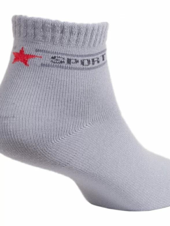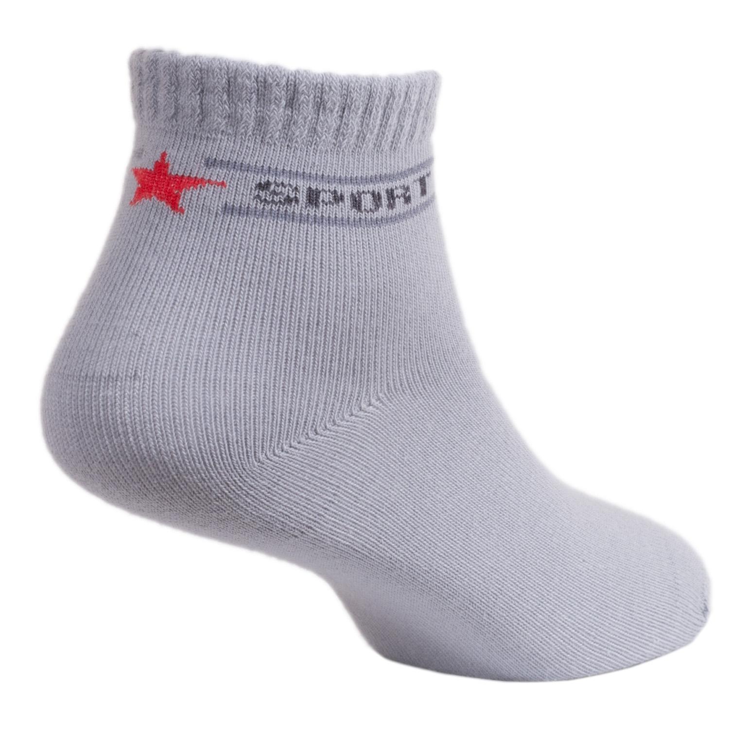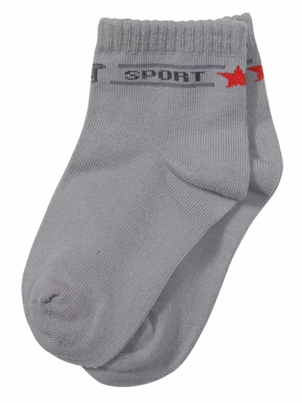 Удобные детские носки RuSocks. Связаны на российской фабрике - ООО Орудьевский трикотаж. Особенность модели - укороченная длина, небольшая надпись SPORT. Модель представлена в светло-сером цвете. Носки сделаны из мягкого хлопка, хорошо тянутся и позволяют коже дышать. Оттенки разных пар носков могут различаться.