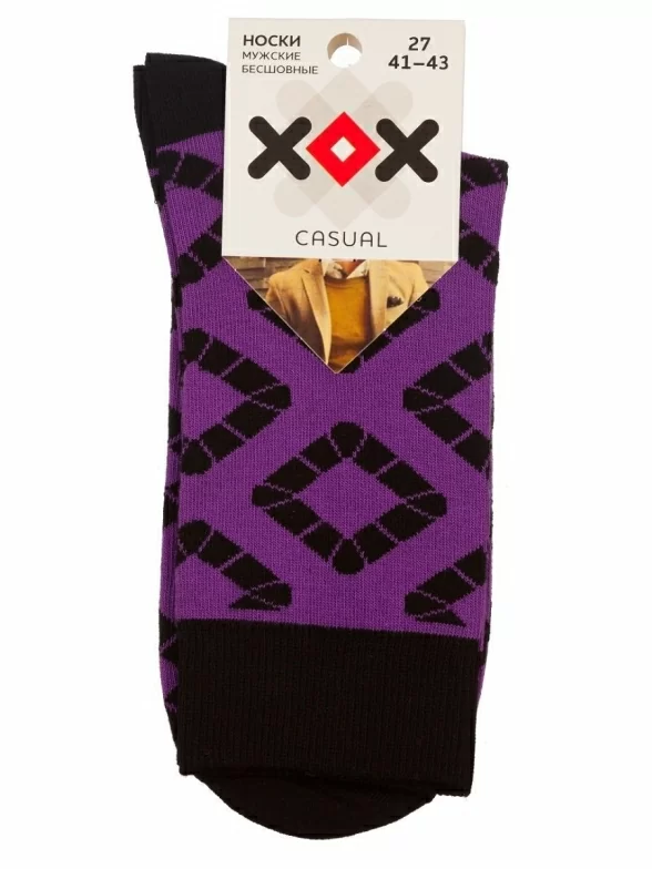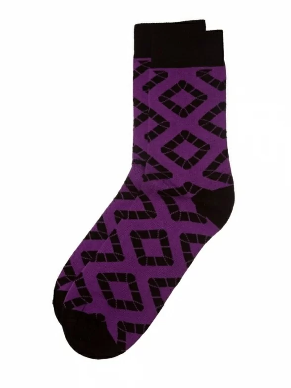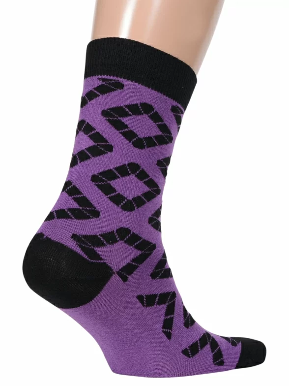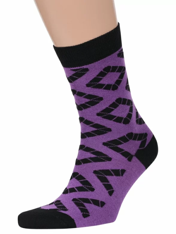 Очень стильные фантазийные носки с контрастными элементами и необычными узорами. Модель изготовлена из приятного к телу хлопка. Носки отлично тянутся. Модель органично впишется в модный образ в стиле Casual.