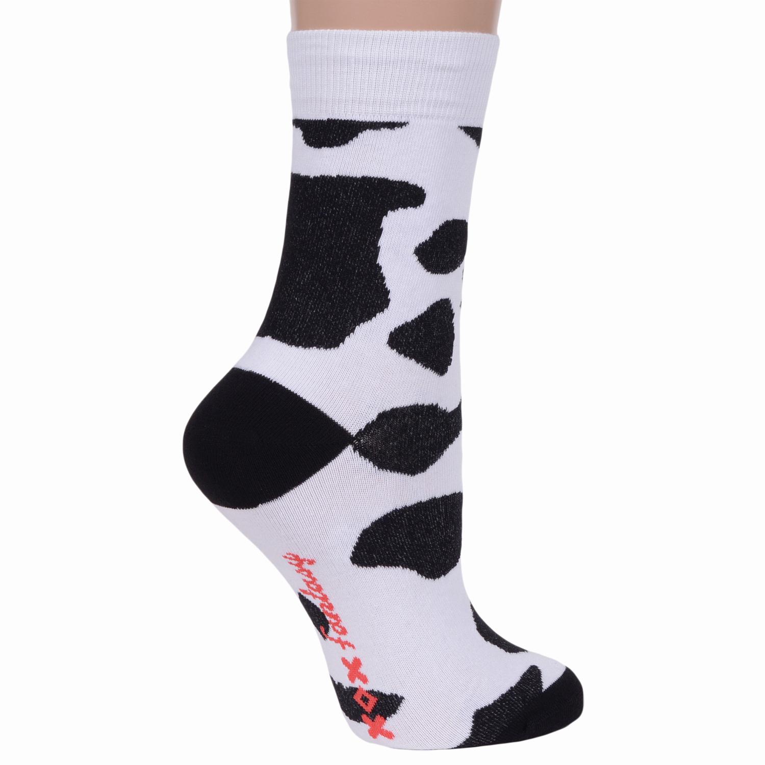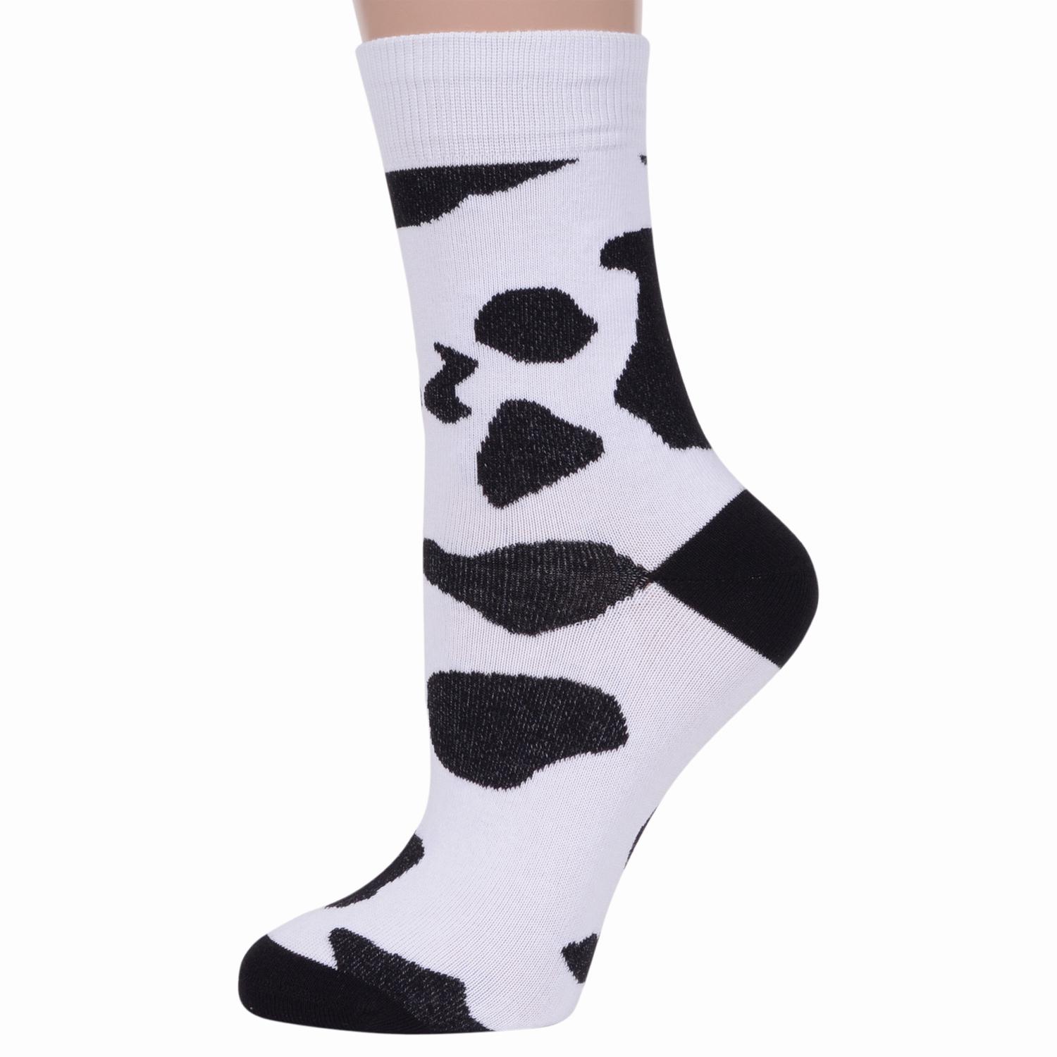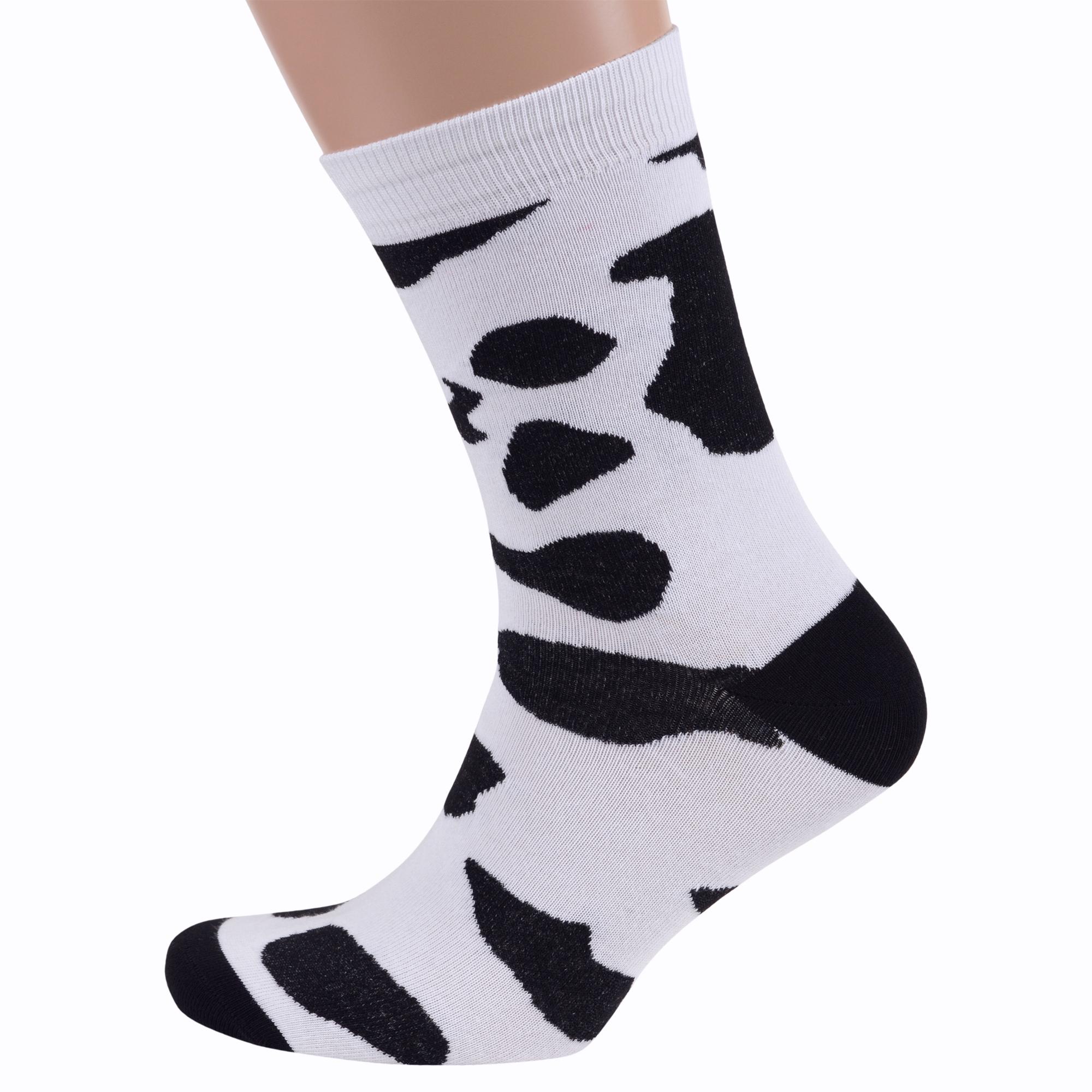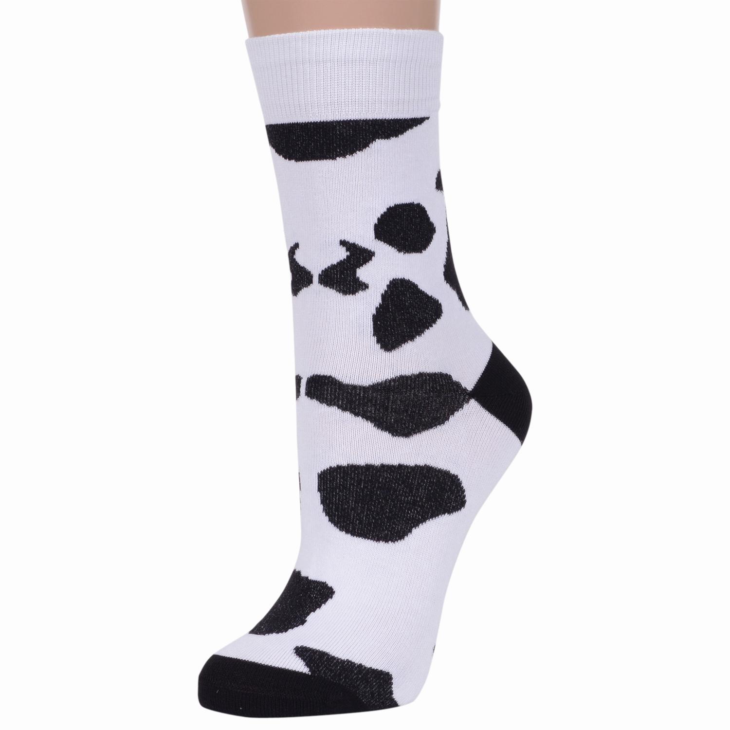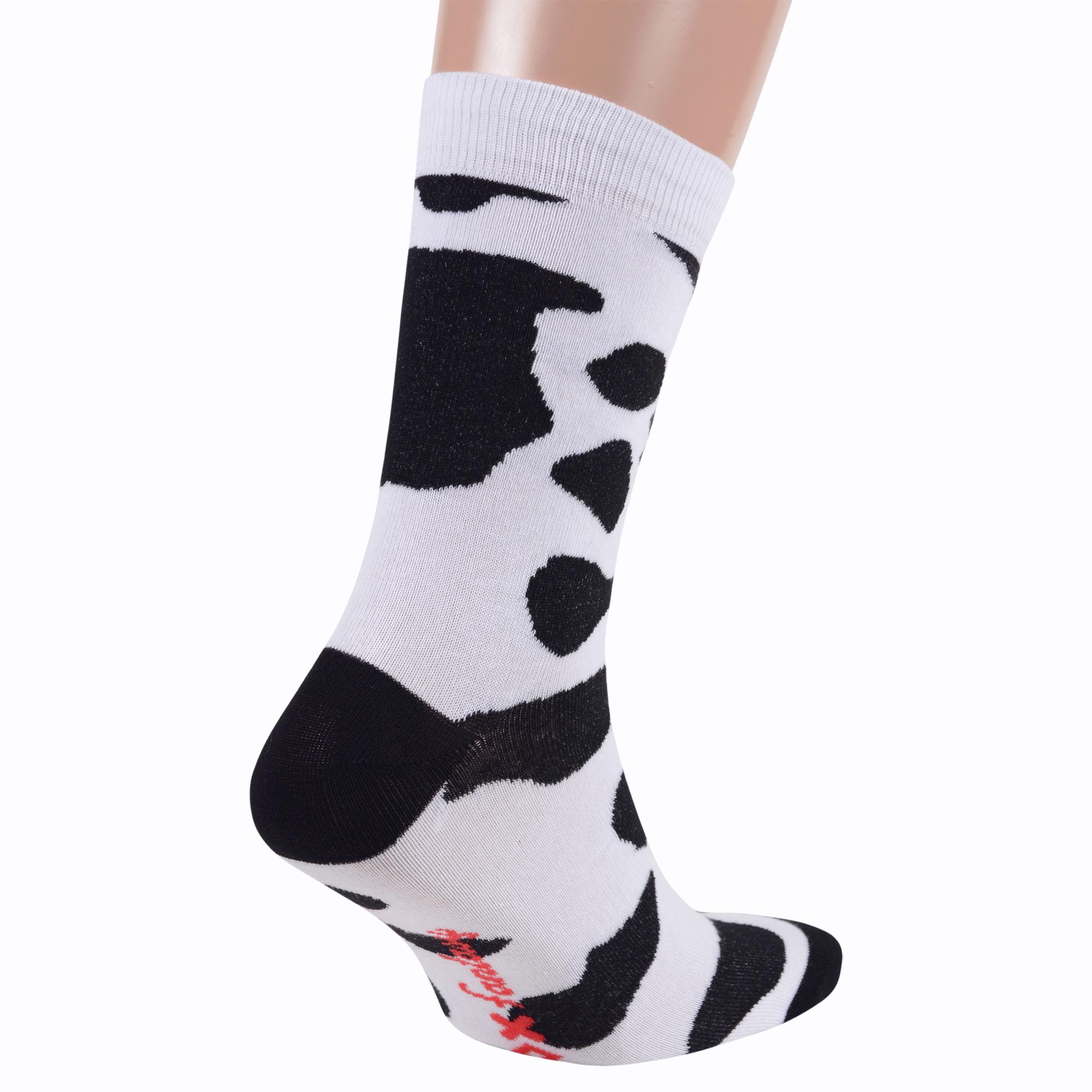 Модные бесшовные  носки в стиле casual, выполненные из плотного хлопка. Они декорированы принтом, имитирующим кожу коровы. Модель классической длины.