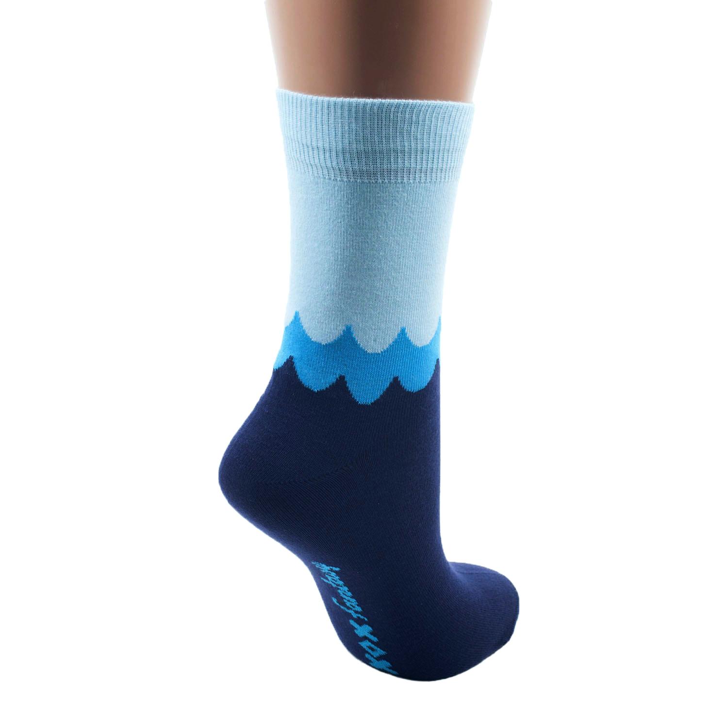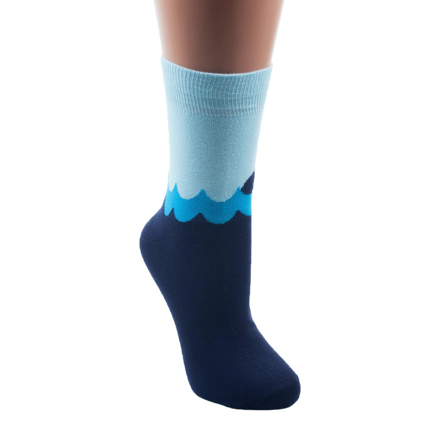 Качественные носки из хлопка ХОХ для повседневного использования. Износостойкие, плотные, эластичные. После стирки сохраняют свою форму и яркость цвета. Не покрываются катышками. Отлично дополнят ваш повседневный образ. Отличительная особенность модели - морские волны и изображение хвоста кита.