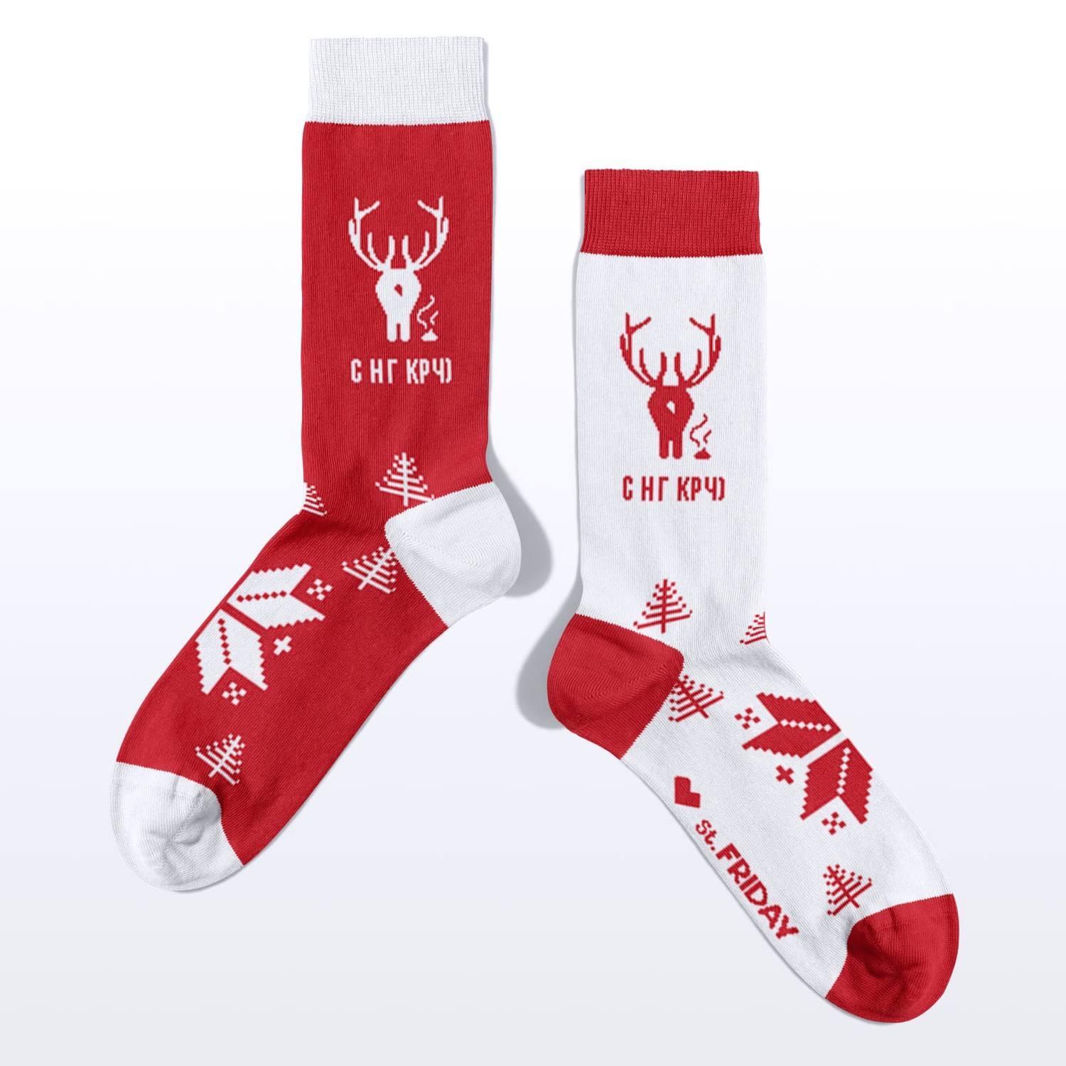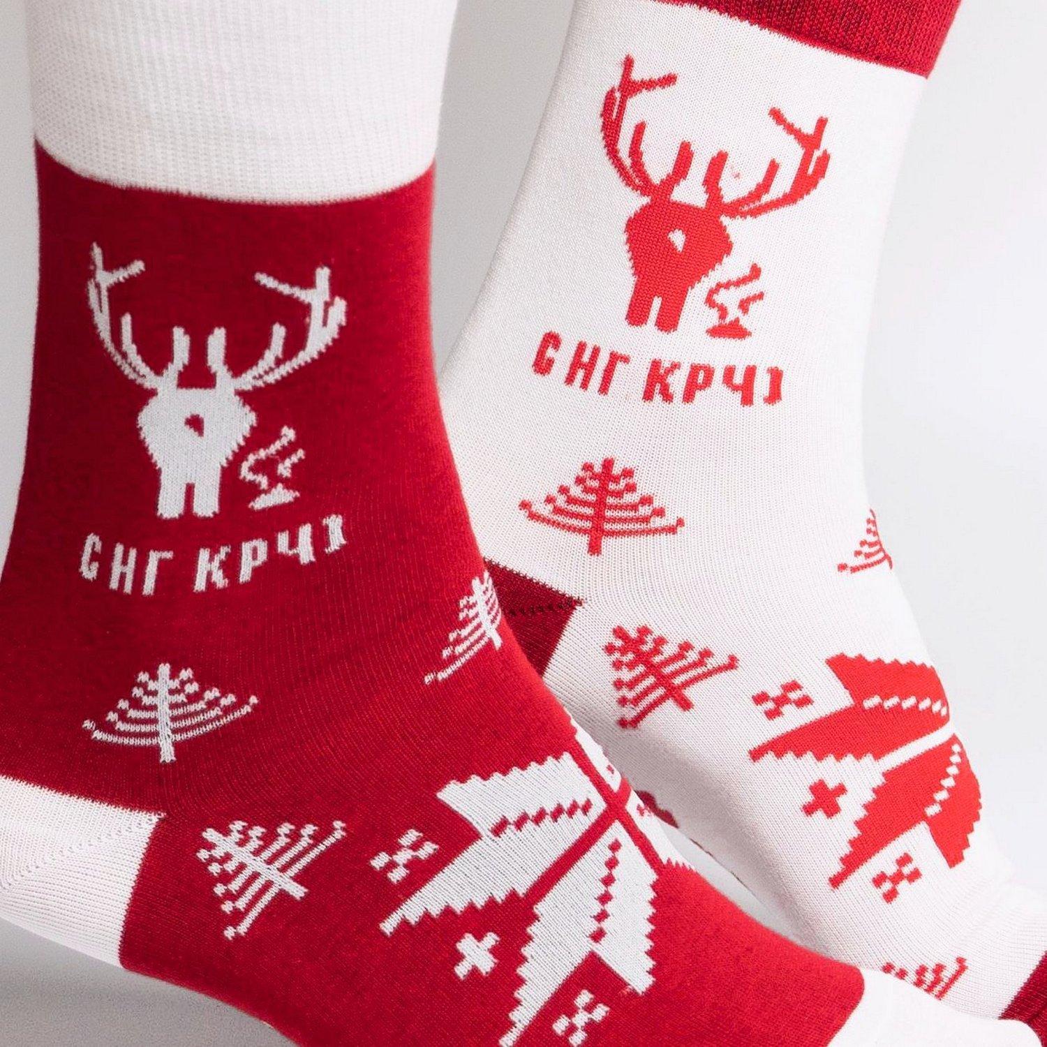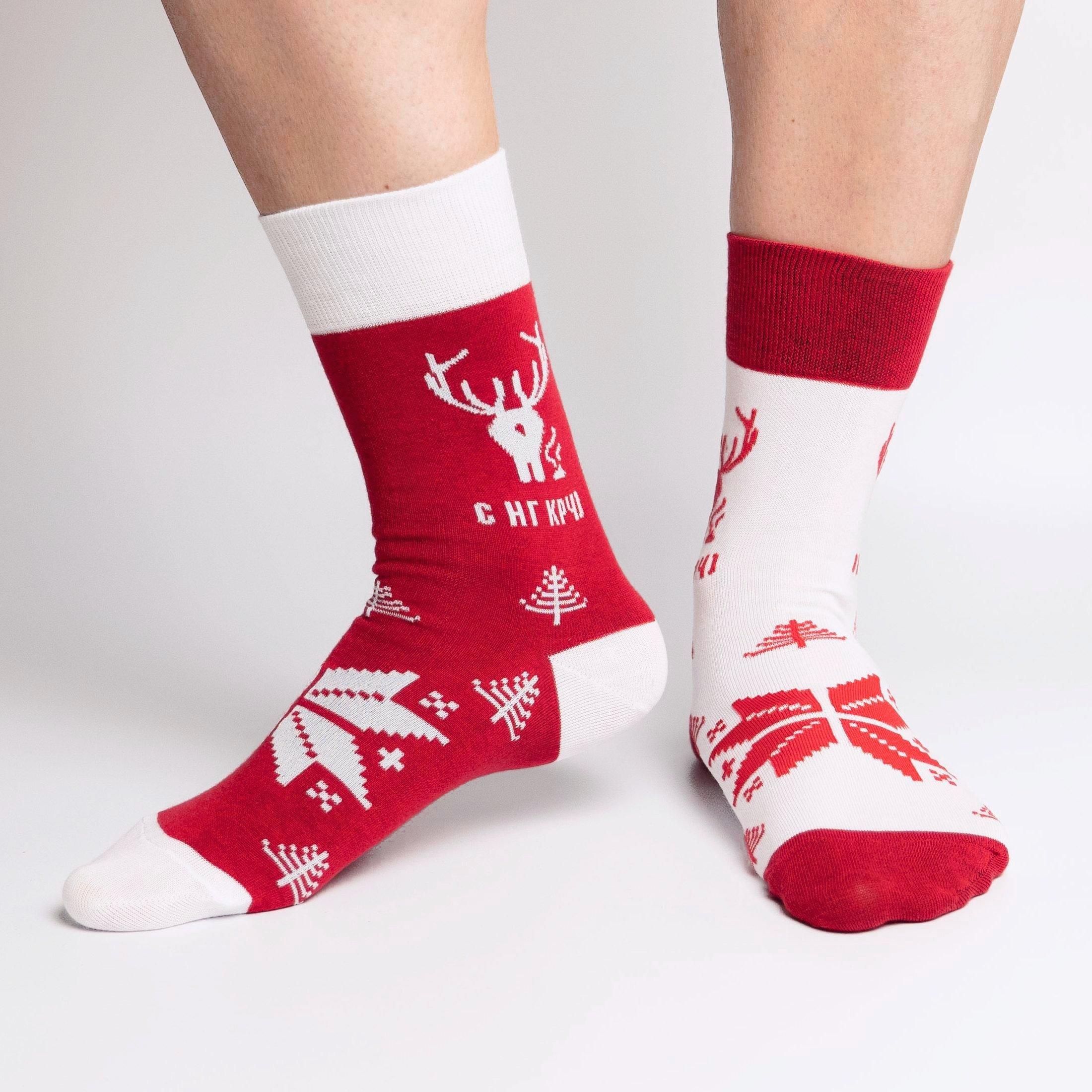 Носки унисекс "Старый мемъ борозды не портит" с интересным неповторимым новогодним дизайном, различным на двух носках из пары.