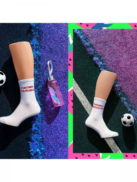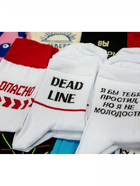 Носки унисекс "Цой жив, Гуф умер" с интересным неповторимым дизайном - оформлены ироничными надписями на основе известных мемов.