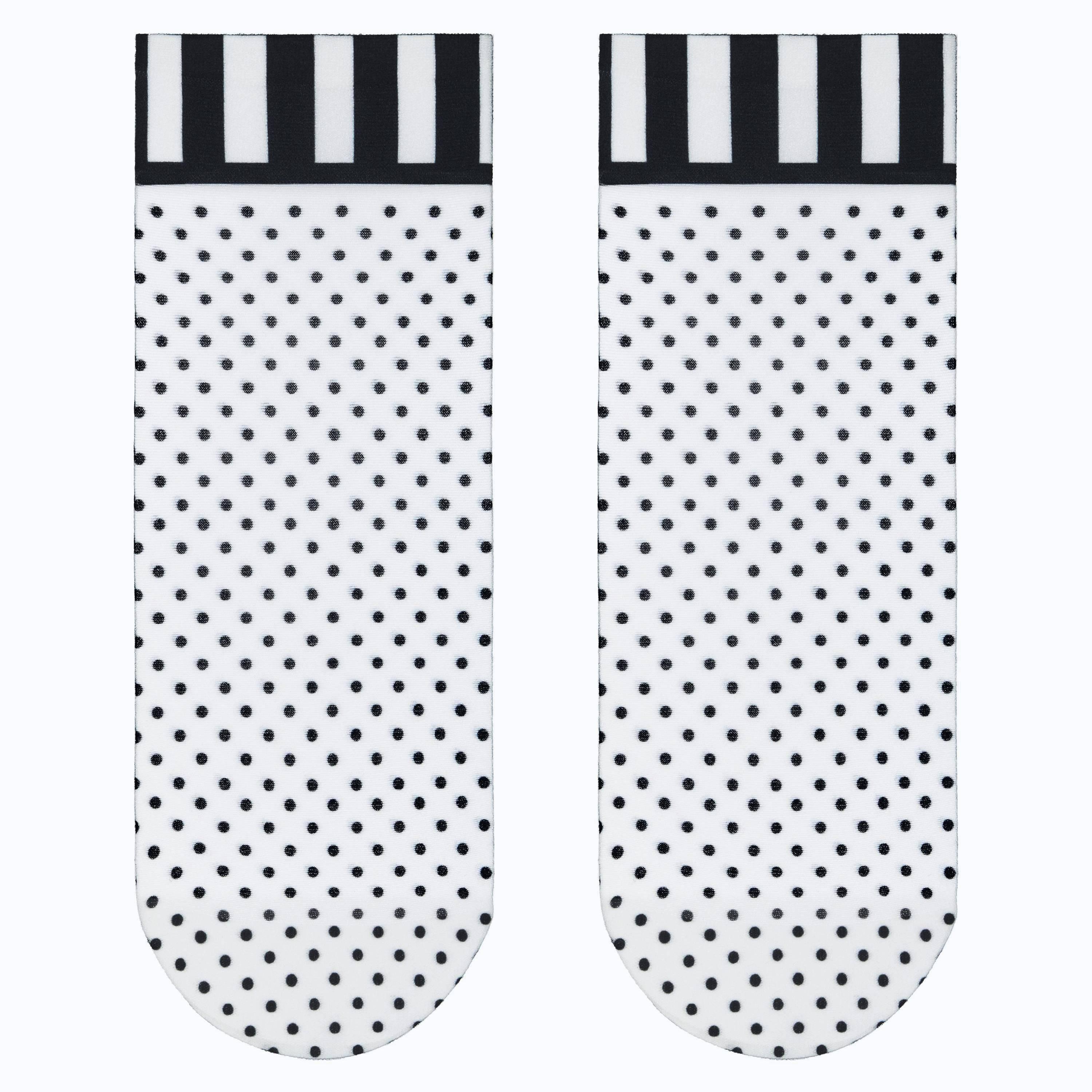 Капроновые фантазийные женские носки плотностью 40 den с принтом в горох, нанесенным термопечатью.