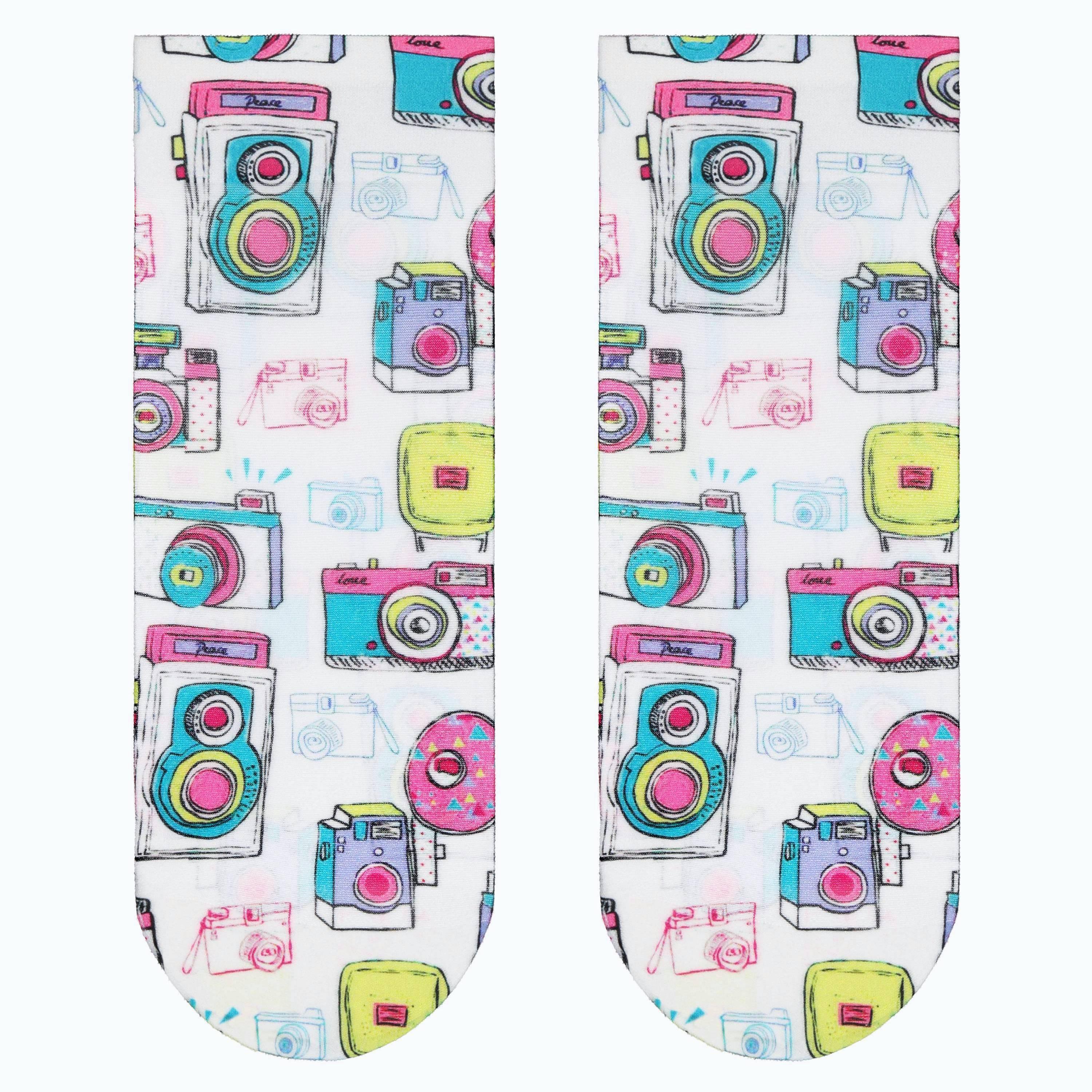Капроновые фантазийные женские носки с принтом в виде фотоаппаратов.