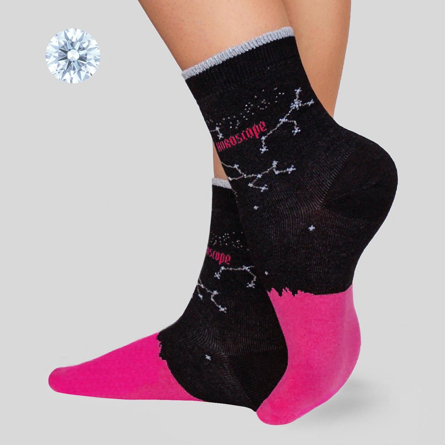 Хлопковые носки на каждый день! Удобные, мягкие, эластичные, средней длины. Отличительная особенность модели - оформление дизайнерским принтом в виде созвездия и надписью HOROSCOPE.