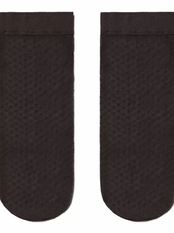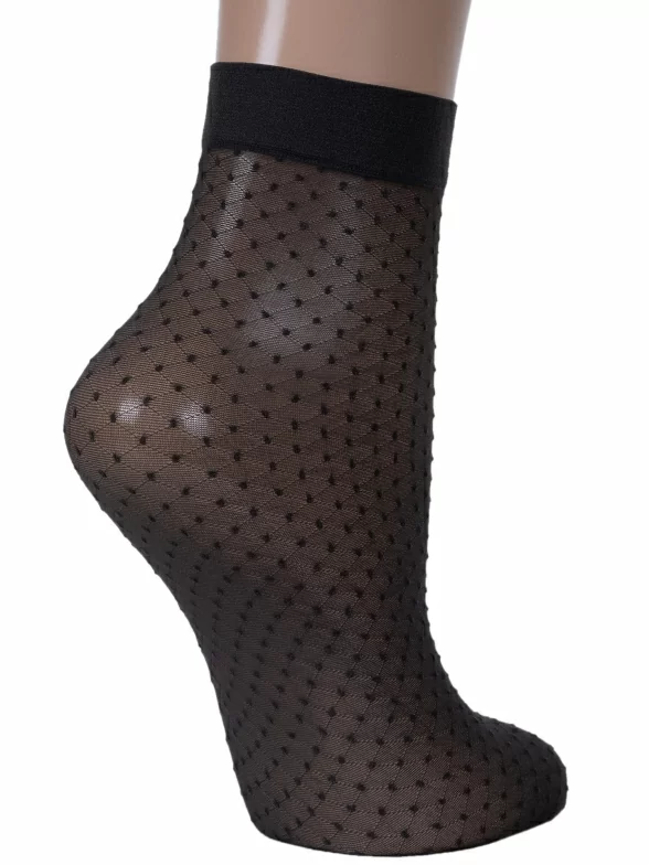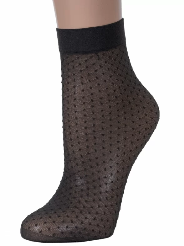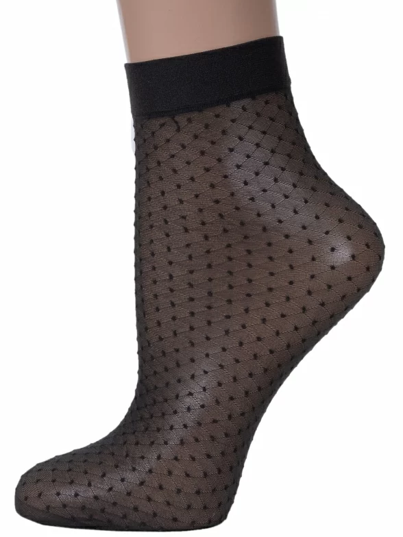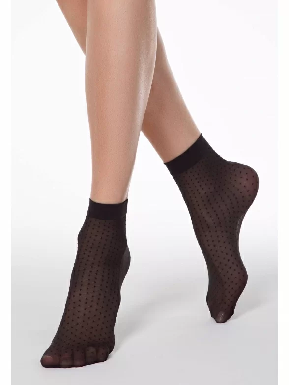 Женские носки украшены принтом в горох. Модель от белорусского производителя Conte сделана из полиамида и эластана.