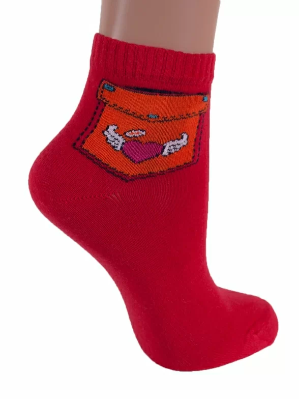 Качественные женские носки укороченного фасона. Они сделаны из плотного трикотажа с высоким содержанием хлопка с самым настоящим маленьким кармашком, украшенным принтом с сердечком.