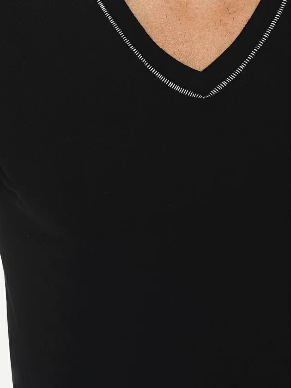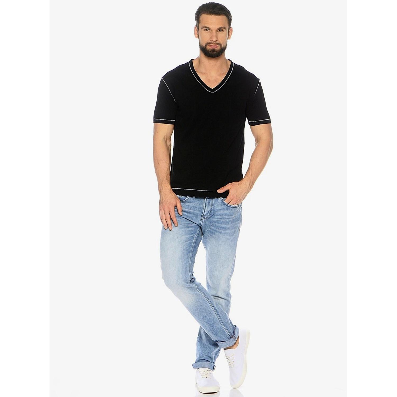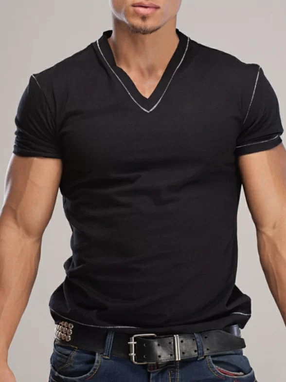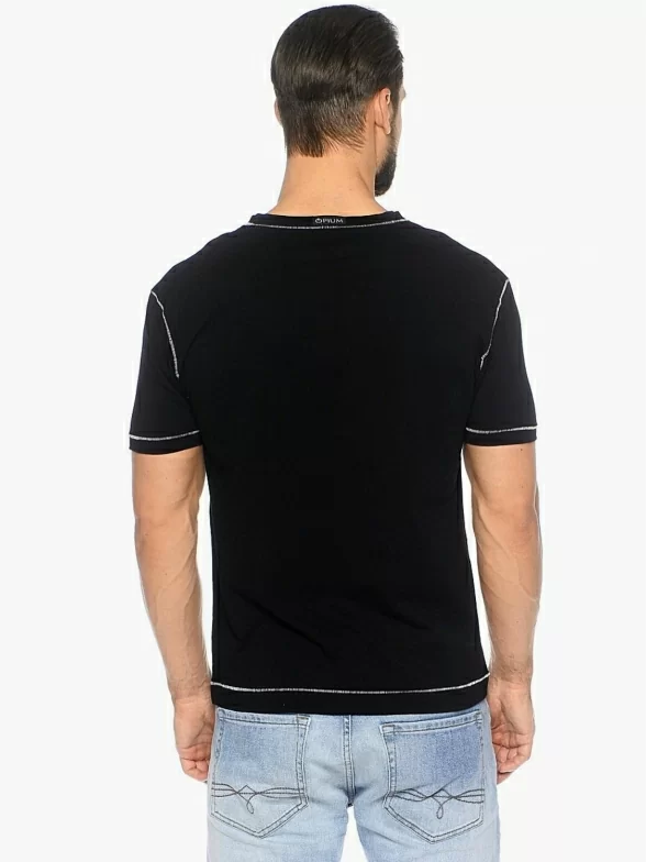 Модная мужская футболка свободного кроя, оформленная контрастными отстрочками. Модель с коротким рукавом и треугольным вырезом горловины.