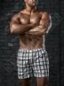 Классические мужские трусы-шорты свободного кроя с принтом в классическую клетку и клапаном-застежкой на пуговицах.