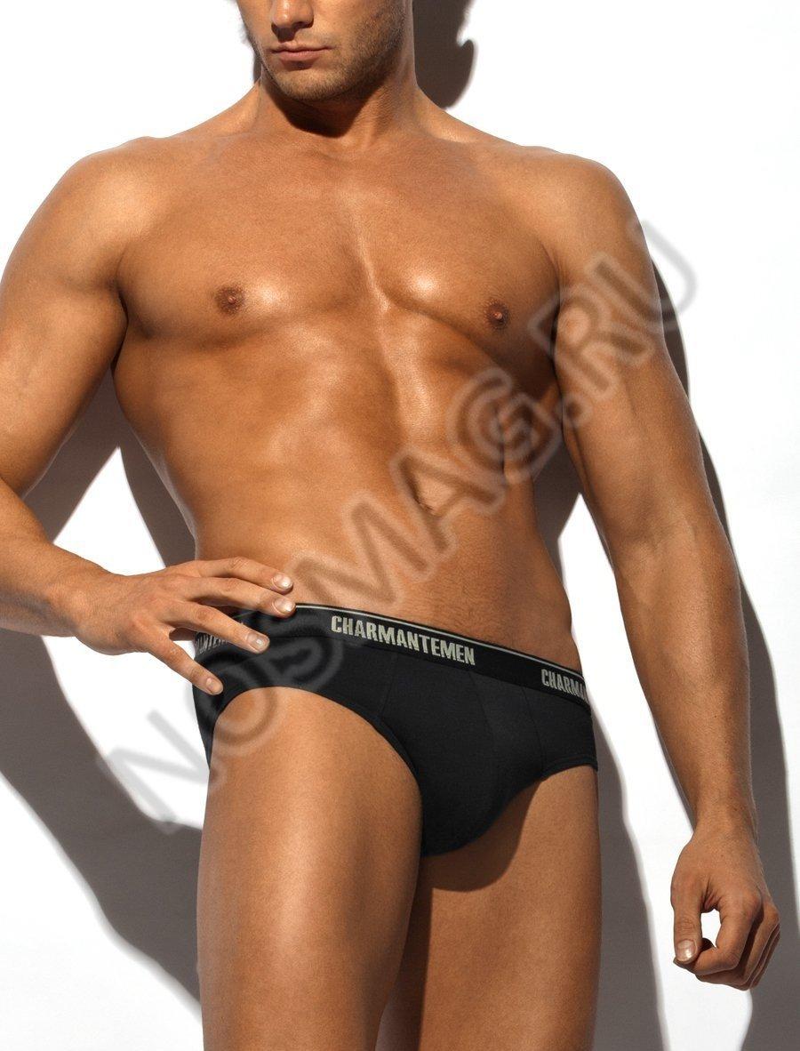 Облегающие мужские трусы с надписью "Charmantemen" на широком плетеном поясе, с анатомическим рельефным кроем.