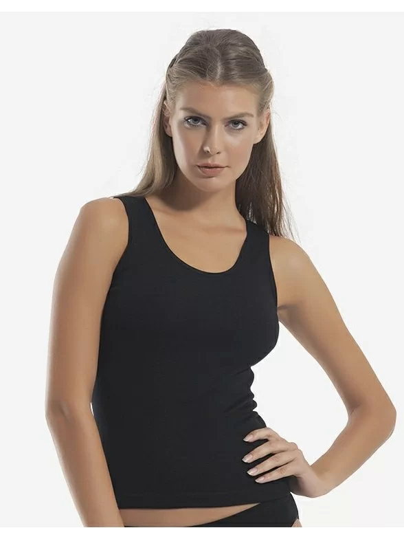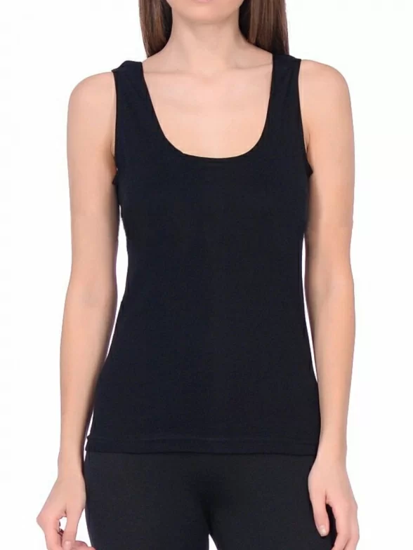 Классический женский топ из хлопка на узких бретелях. Модель прилегающего силуэта с глубоким вырезом.