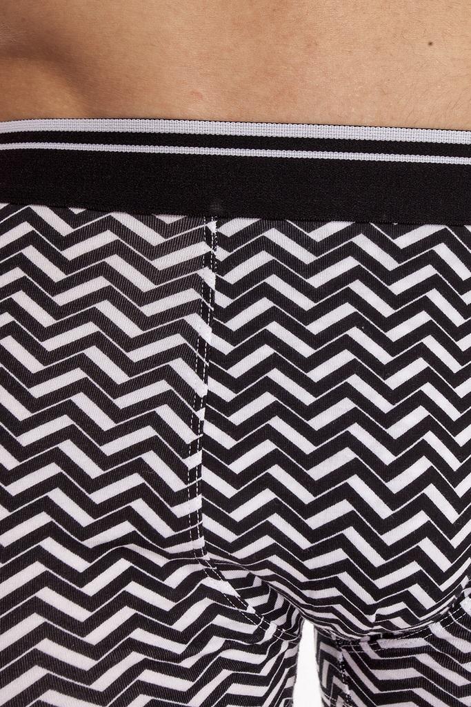 Удобные хлопковые трусы-шорты для мужчин. Материал мягкий, цвет черный, узор - геометрическая абстракция. Плотно прилегают к телу благодаря входящему в состав эластану. Подходят для ежедневного использования. Широкая резинка удобная и плотная, не перетягивает кожу.