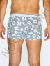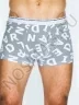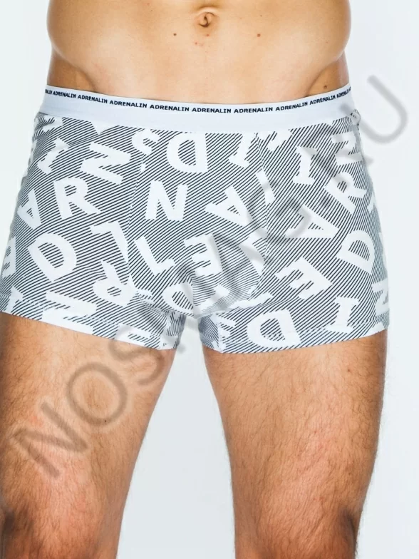 Классические обтягивающие мужские трусы в виде шорт со средней посадкой выполнены из хлопкового полотна с добавлением эластана. Материал с крупным буквенным принтом в одном цветовом тоне. На поясе широкая резинка с тематической надписью.