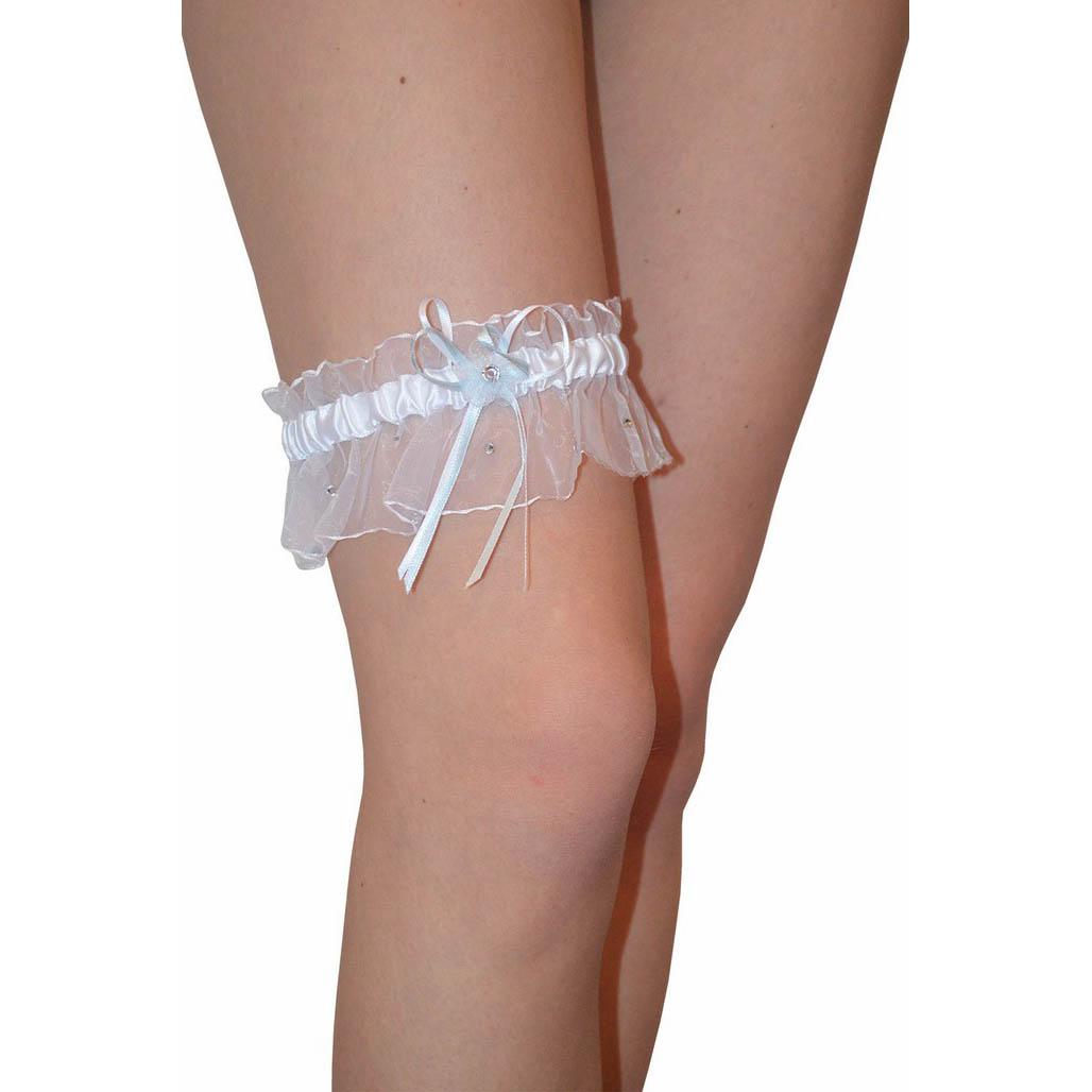 Изысканная подвязка из шифона, оформленная репсовой тесьмой, сложенной в бантик и вкраплениями единичных страз. Очень эффектный аксессуар!