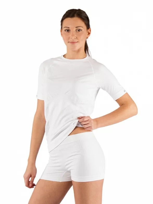 Женская термофутболка с коротким рукавом реглан. Она сделана из инновационного эластичного материала Seamless 180 g и связана вязкой "сетка" для улучшенной циркуляции воздуха. Плоские швы призваны повысить комфорт и максимально снизить вероятность раздражения кожи. Футболка обеспечивает быстрый вывод и испарение пота, позволяя коже оставаться сухой даже при очень высоких физических нагрузках. Модель рекомендуется использовать как единственный слой одежды летом или в качестве нижнего слоя в демисезонный период.
