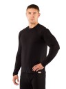 Мужская термофутболка с длинным рукавом. Модель обеспечивает высокий уровень комфорта даже при очень интенсивных нагрузках. Она изготовлена из легкой мериносовой шерсти и обладает антибактериальным эффектом, препятствуя появлению неприятного запаха после интенсивных тренировок. Материал приятен на ощупь и на 100% состоит из волокон натурального происхождения. Футболка эффективно выводит пот, идеально облегает тело и не прилипает. Однослойная кулирная вязка и тонкий материал делают ее предельно легко. Вырез горловины – круглый, с небольшим воротником по окружности.