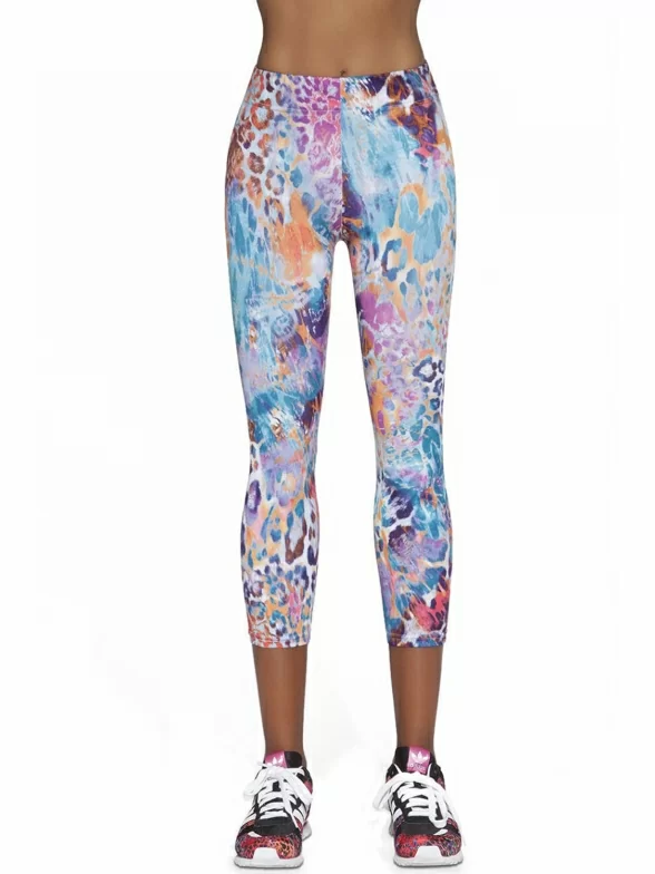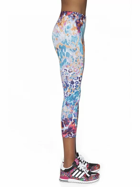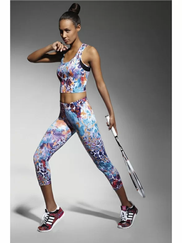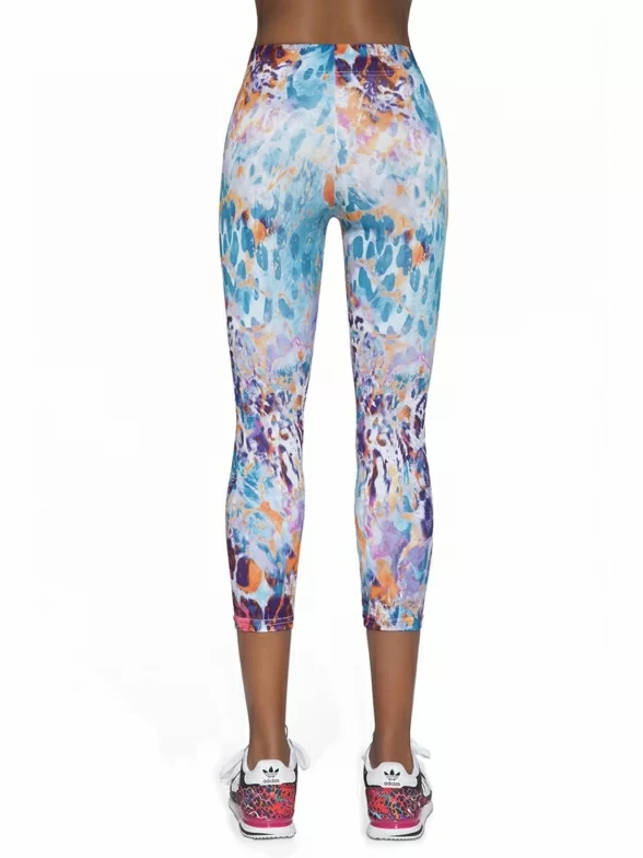 Леггинсы-бриджи плотностью 200 Den, оформленные ярким принтом. Модель предназначена для фитнеса и обладает корректирующим эффектом. Обработка волокон материала способствует улучшенной циркуляции воздуха и быстрому выводу влаги.