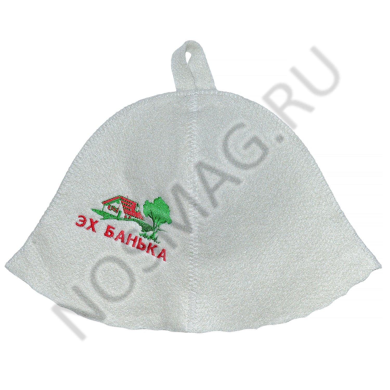 Банная шапка Главбаня BSH-1X, БЕЛАЯ, "ЭХ БАНЬКА"
