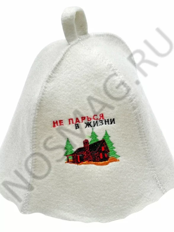 Банная шапка Главбаня, BSH-1X, БЕЛАЯ, "НЕ ПАРЬСЯ В ЖИЗНИ"