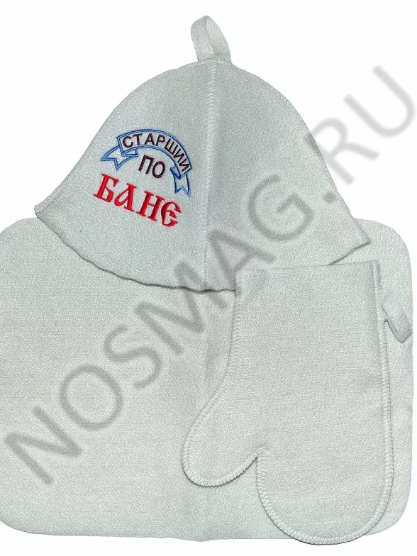Банный комплект Главбаня, BK-3X, БЕЛЫЙ, "СТАРШИЙ ПО БАНЕ"