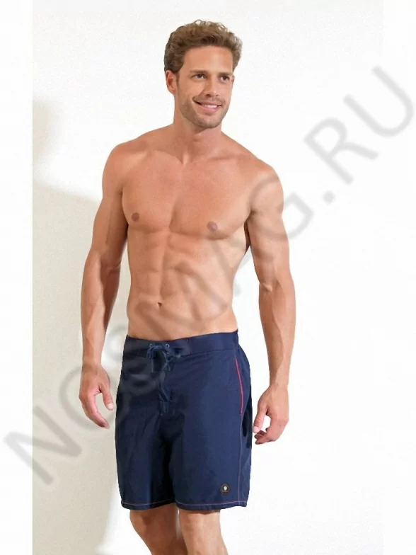 Мужские плавательные шорты с двумя боковыми карманами и одним задним карманом, снабжённым клапаном. Модель имеет широкий пояс с кулиской. Шорты быстро сохнут и очень удобны.