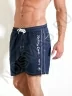 Модные спортивные шорты для мужчин, украшенные стильной надписью. Модель имеет пояс с резинкой и кулиской, а также удобные боковые карманы.