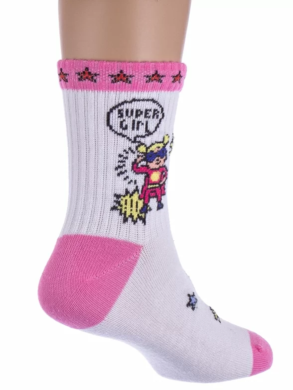 Детские спортивные носки "Борисоглебский трикотаж", 8С228, БЕЛО-РОЗОВЫЕ