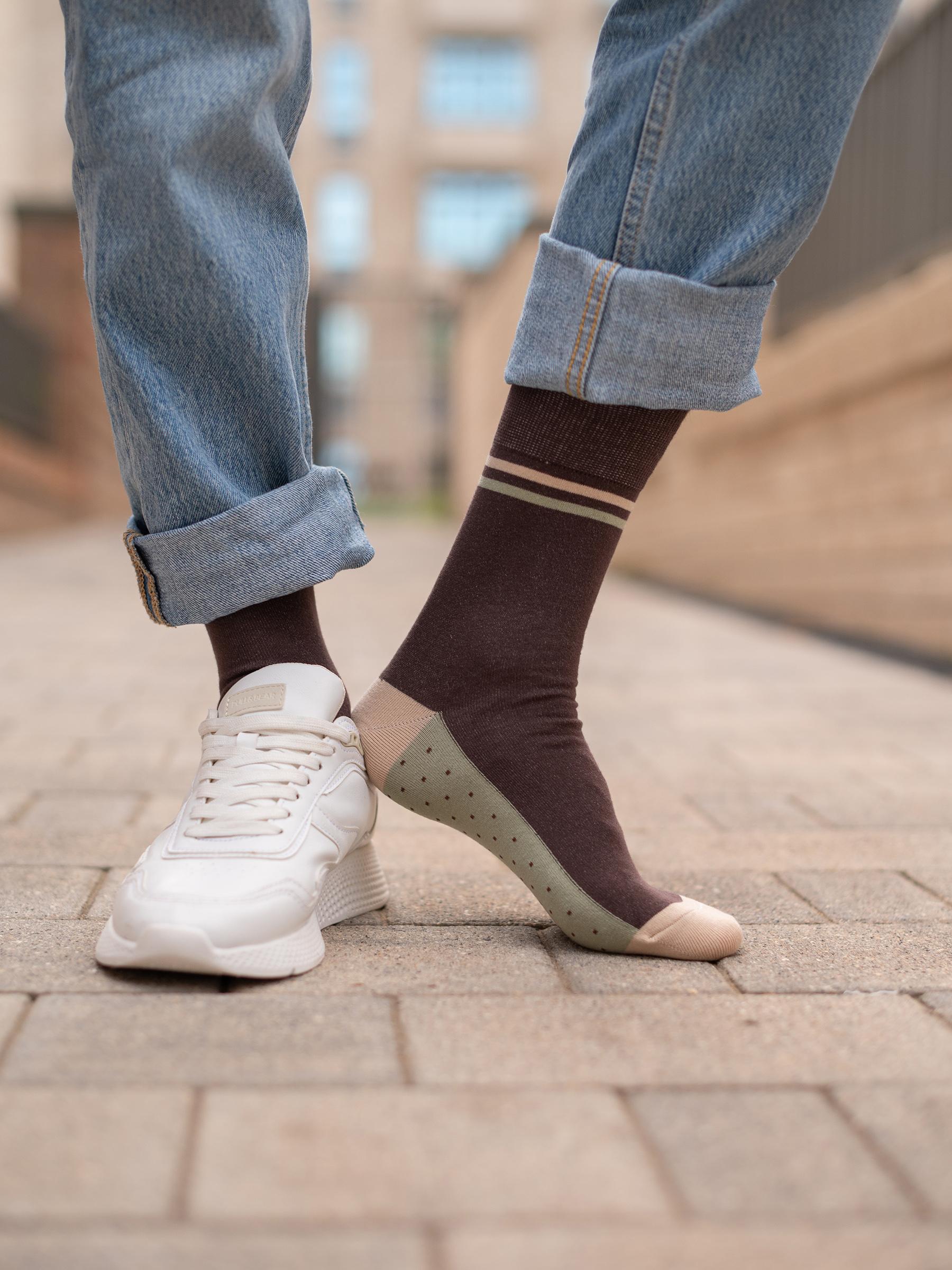 В этот оригинально упакованный набор входит 10 пар мужских носков в ярких расцветках и узорах.