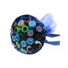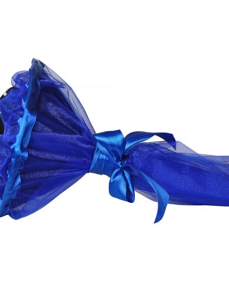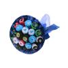 Каждый отдельный носок свернут в "бутончик" и сколот булавкой для фиксации. Получается букет из 18 носочных "цветков" внутри каркаса, обернутого органзой и лентами. Для сохранности внешнего вида при транспортировке набор упаковывается в плотный картон.