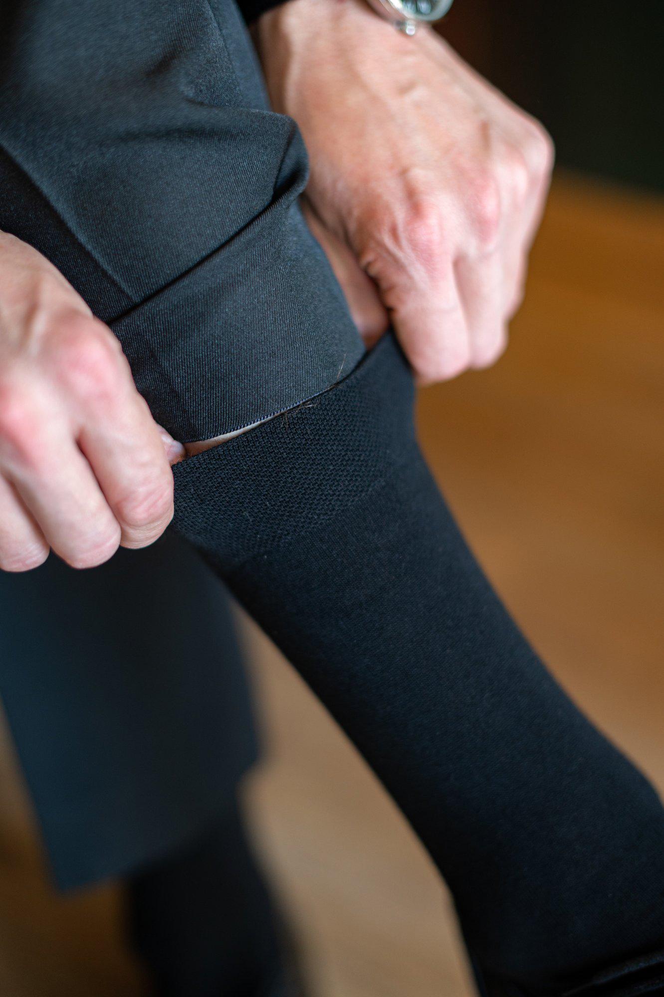 Носки вяжутся на российской фабрике в Оренбургской области. Благодаря качественному оборудованию, оптимальному сочетанию гребенного хлопка и синтетических нитей эти носки износостойкие, гладкие и плотные. Двойной широкий борт не пережимает ногу, при этом надежно фиксирует носок на голени.
