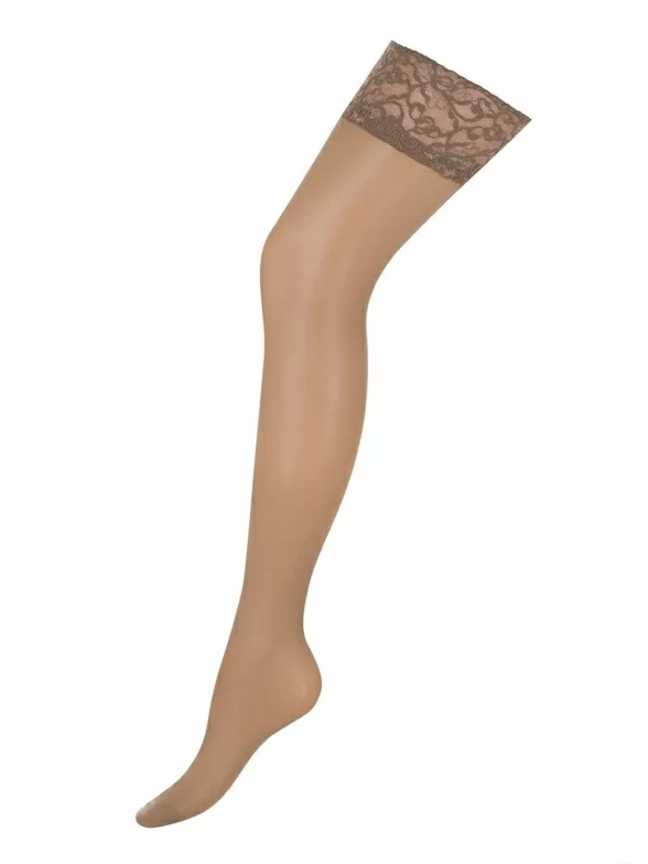 Элегантные женские чулки 20 Den с 9-сантиметровой кружевной резинкой на силиконовой основе. Модель также отличается формованной стопой. Чулки отлично фиксируются на ноге и смотрятся очень эффектно!